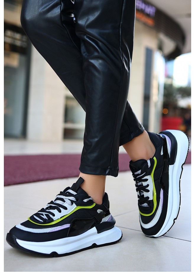Aleh Siyah Cilt Lila Detaylı Spor Ayakkabı