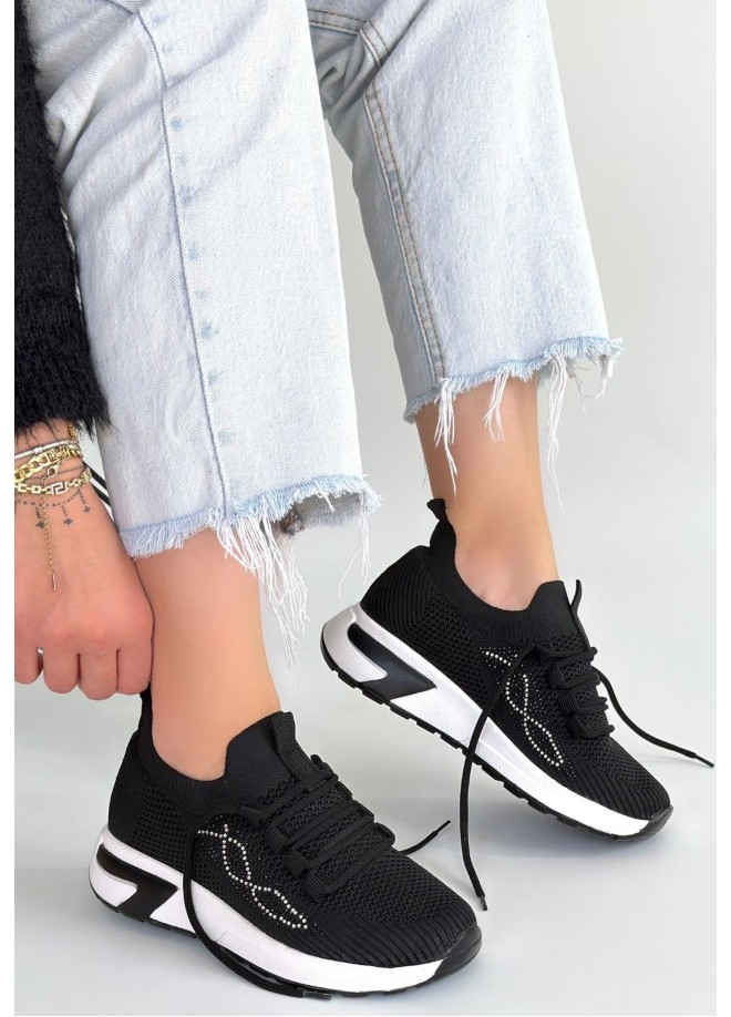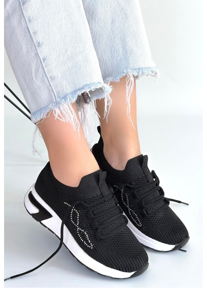 Belan Siyah Triko Bağcıklı Spor Ayakkabı