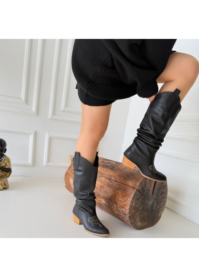 Detay: Topuklu Diz Altı Koboy Çizme
