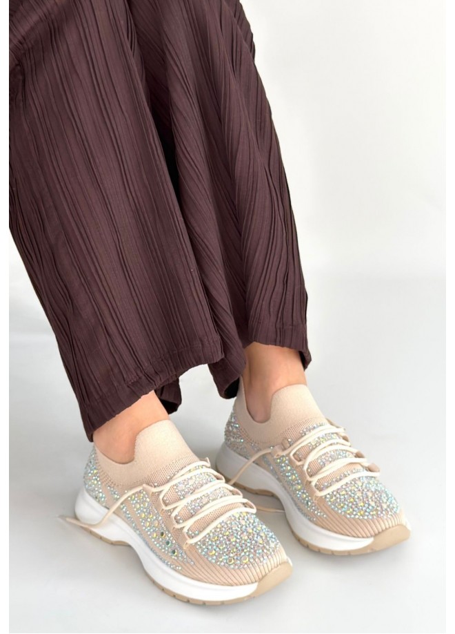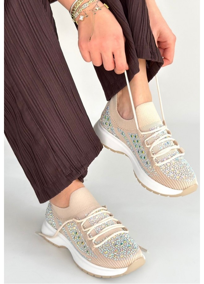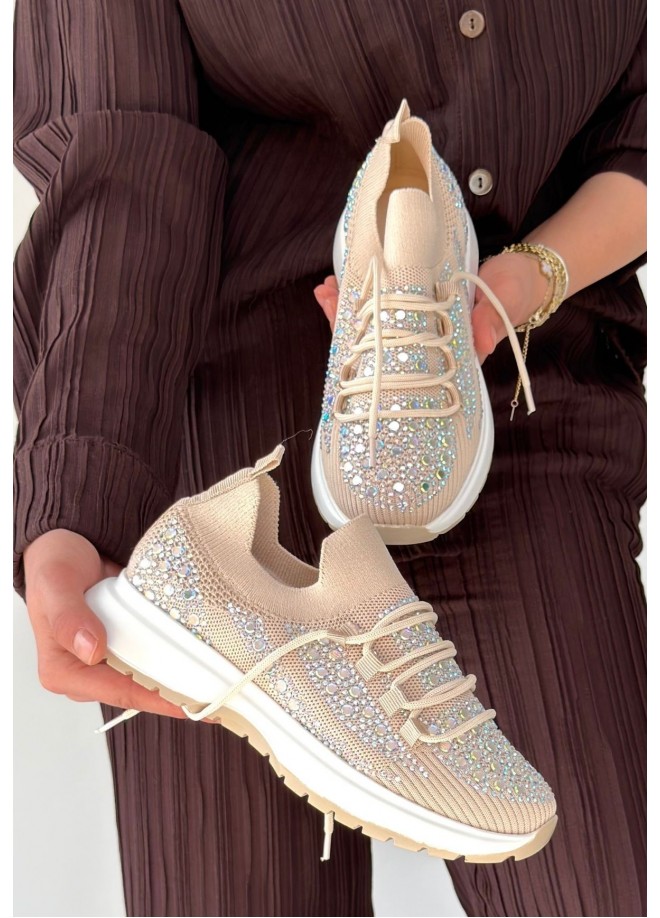 Ceas Bej Triko Bağcıklı Spor Ayakkabı