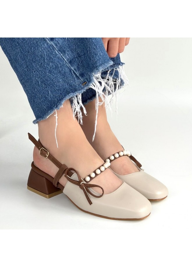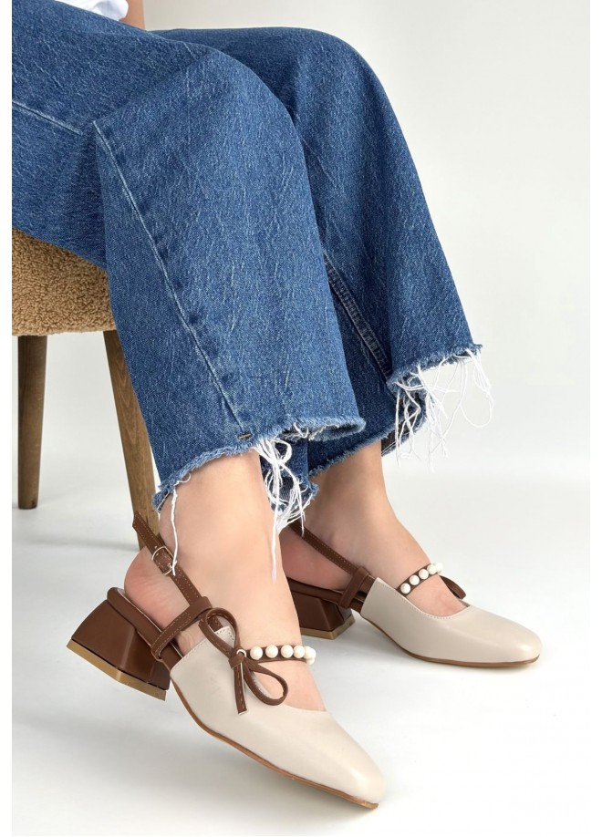 Ceyda Bej Cilt Taba Detaylı Topuklu Ayakkabı