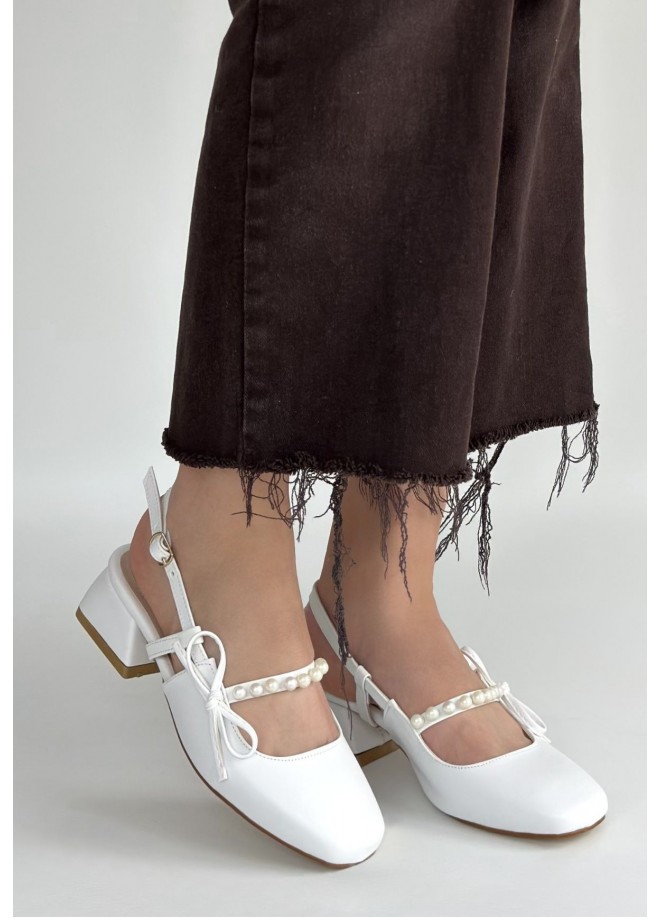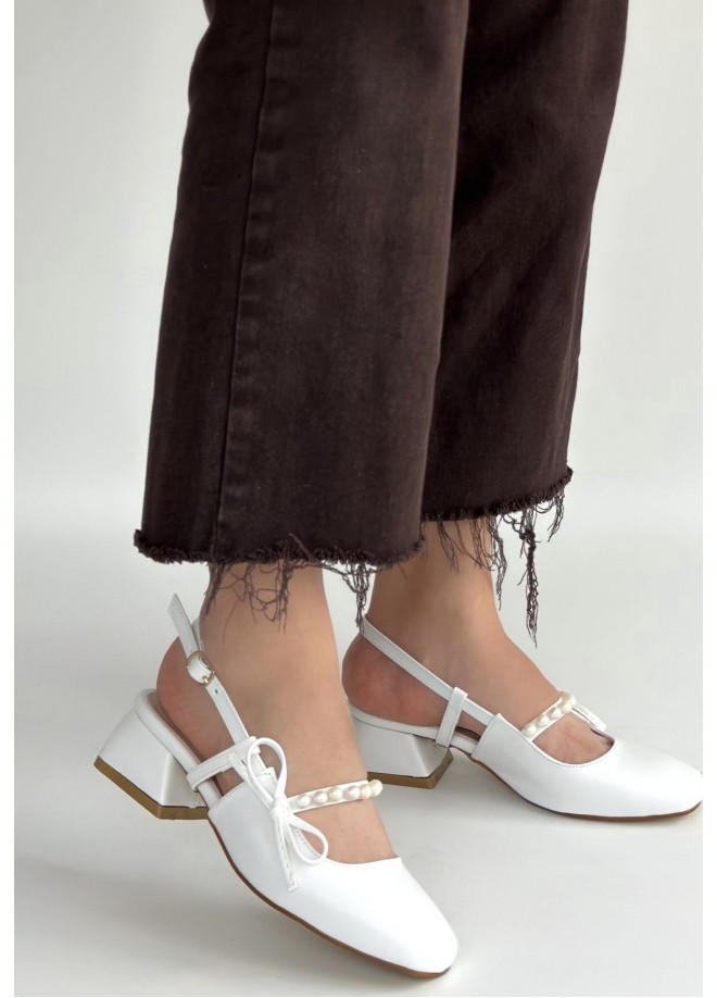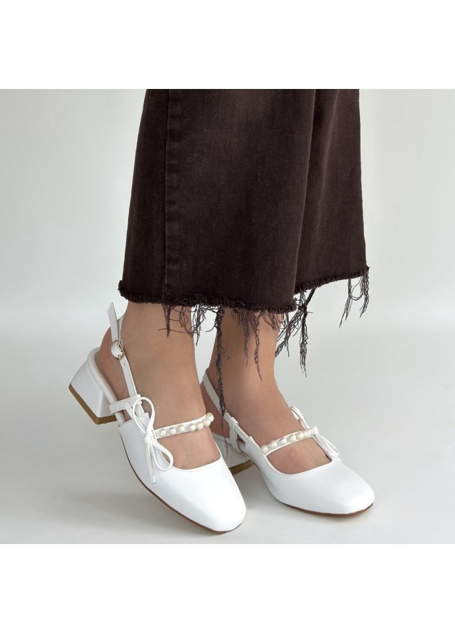 Ceyda Beyaz Cilt Topuklu Ayakkabı