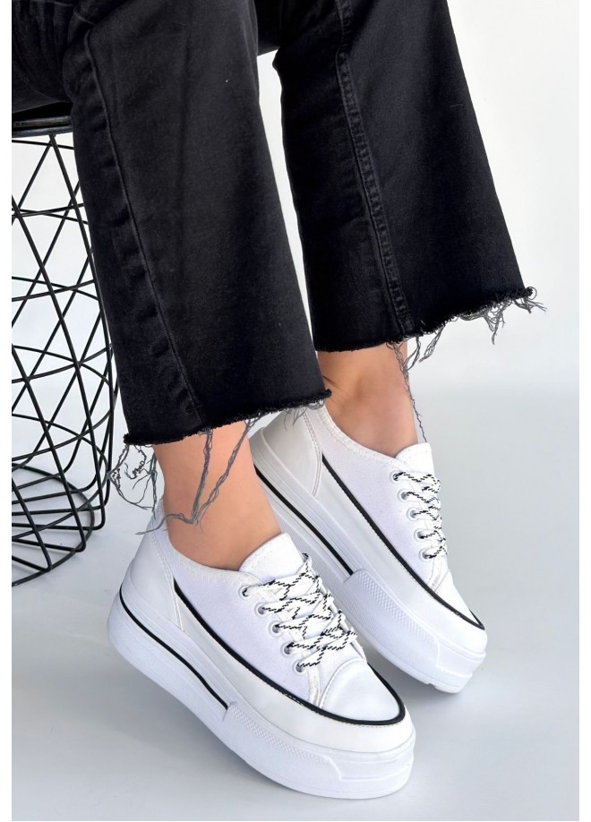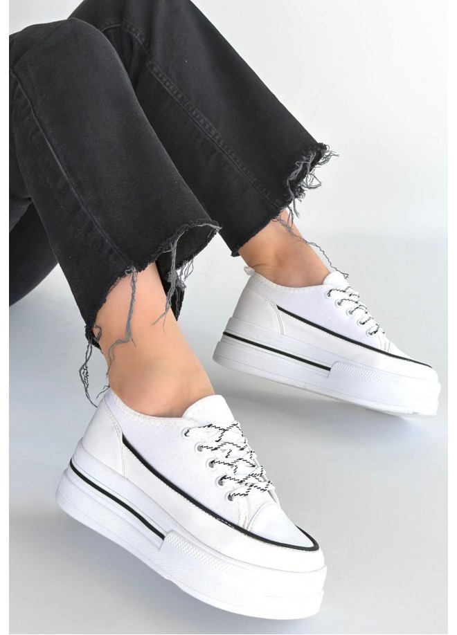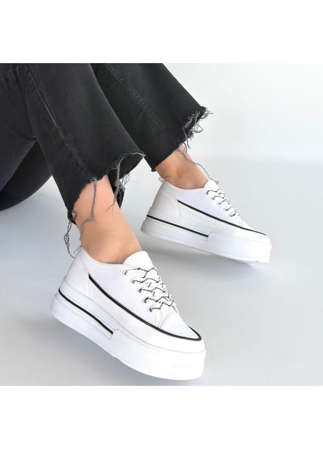 Dalen Beyaz Keten Bağcıklı Spor Ayakkabı