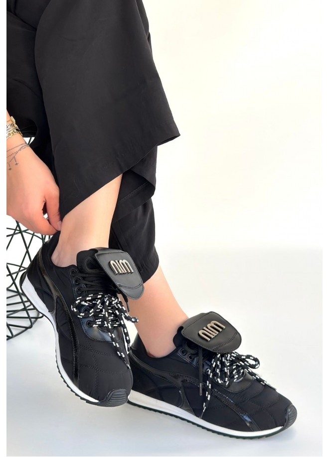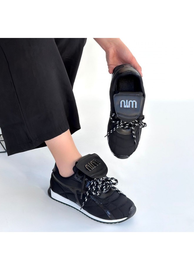 Dissa Siyah Cilt Bağcıklı Paraşüt Detaylı Spor Ayakkabı