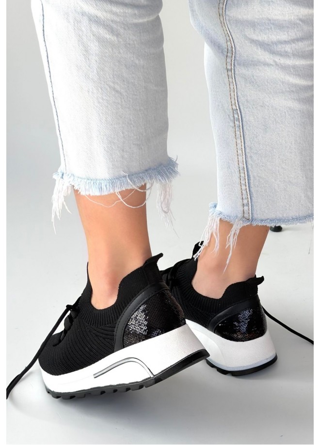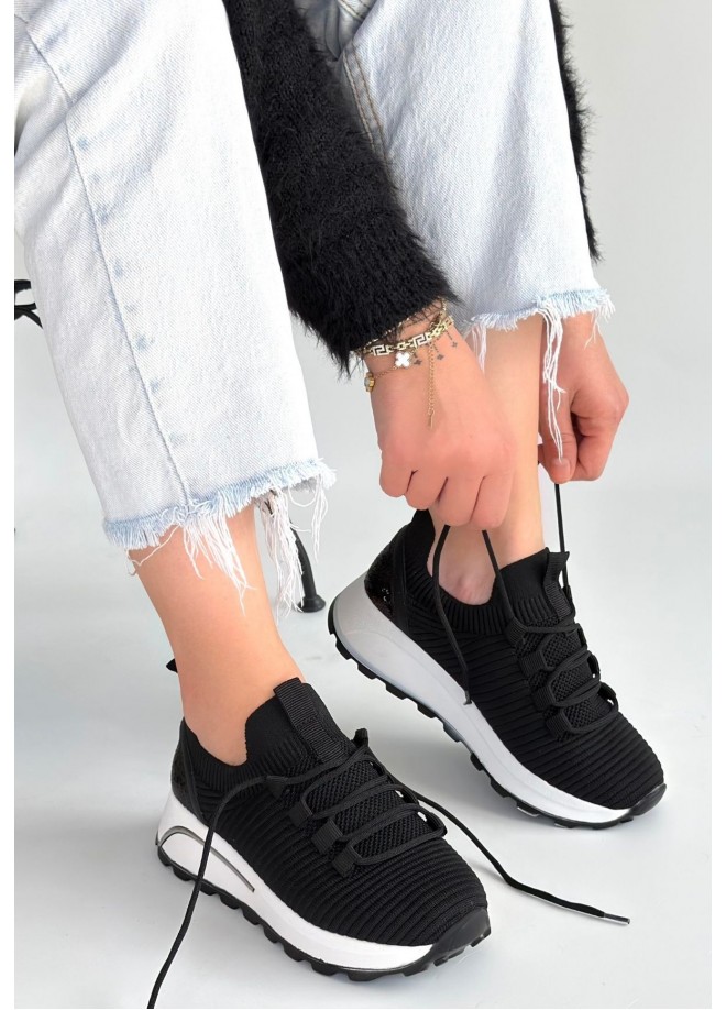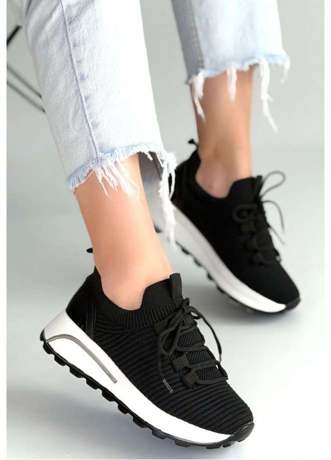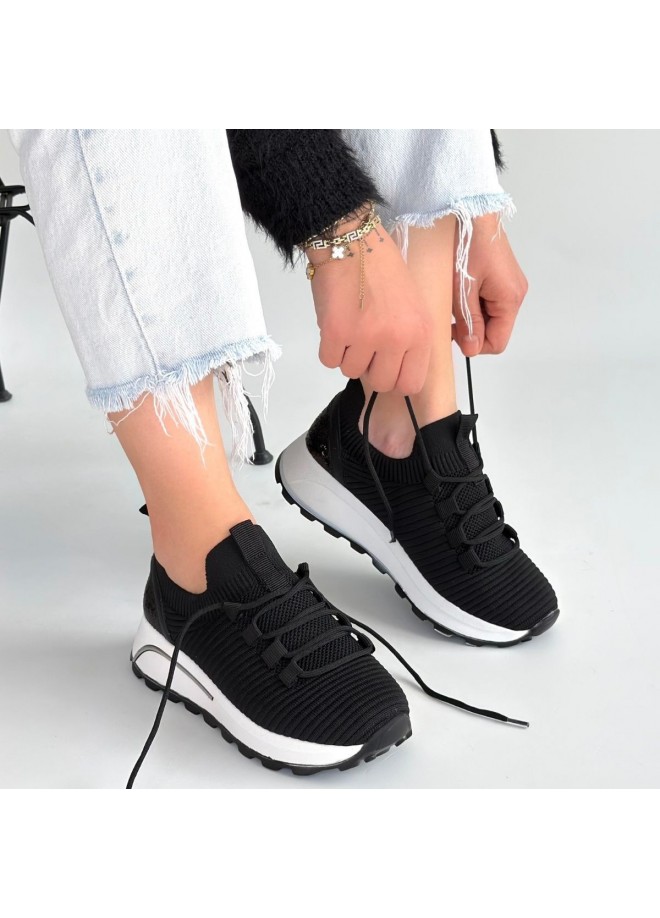 Feort Siyah Triko Bağcıklı Spor Ayakkabı