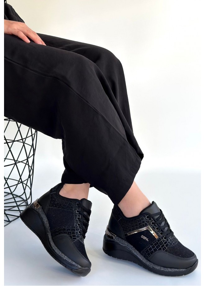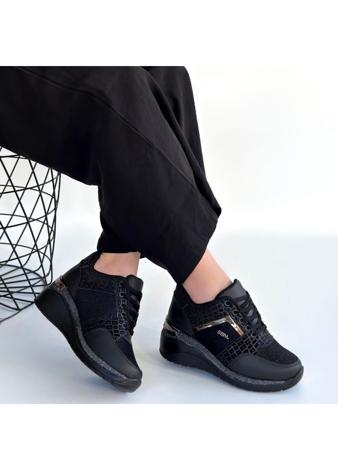 Geja Siyah Cilt Bağcıklı Spor Ayakkabı