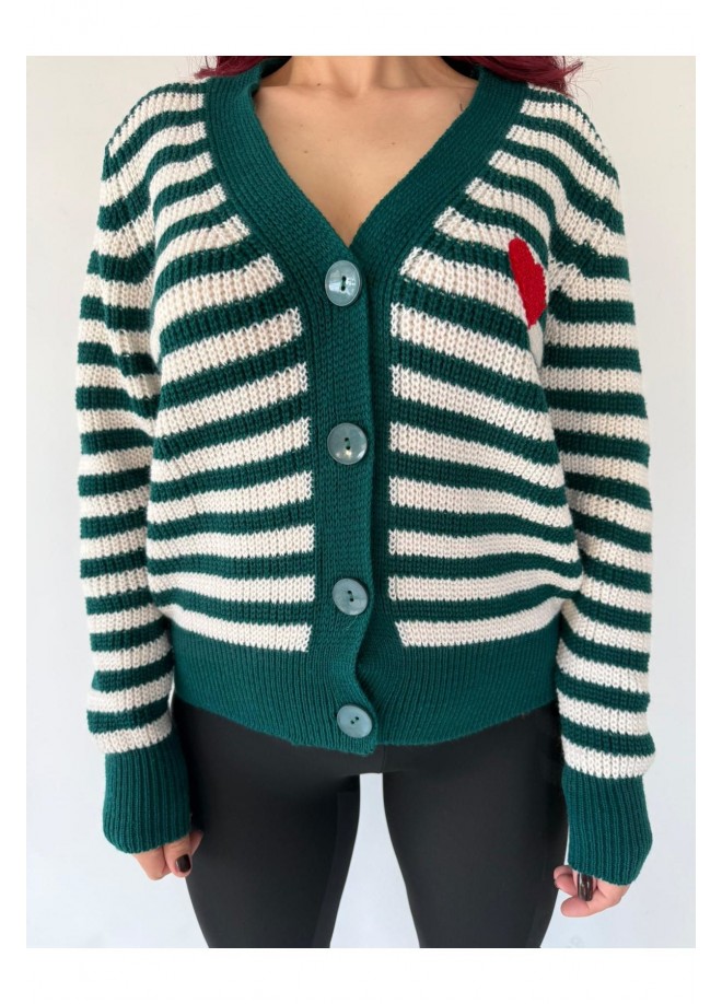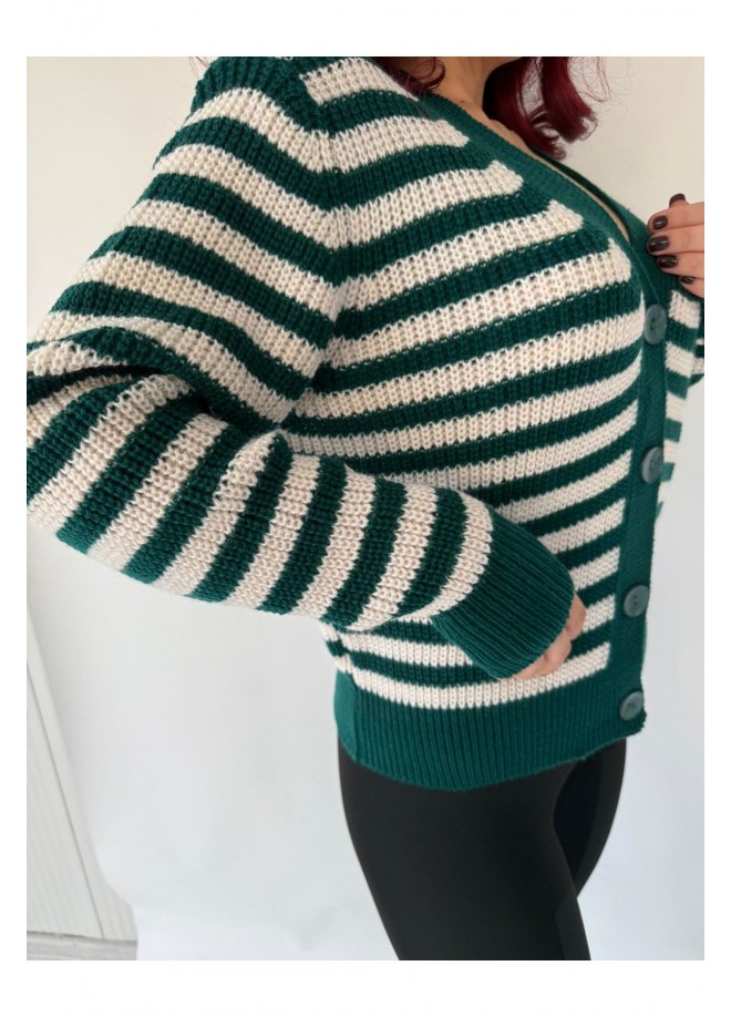• Model: V yaka, uzun kollu, önden düğmeli, kesimli triko hırka.