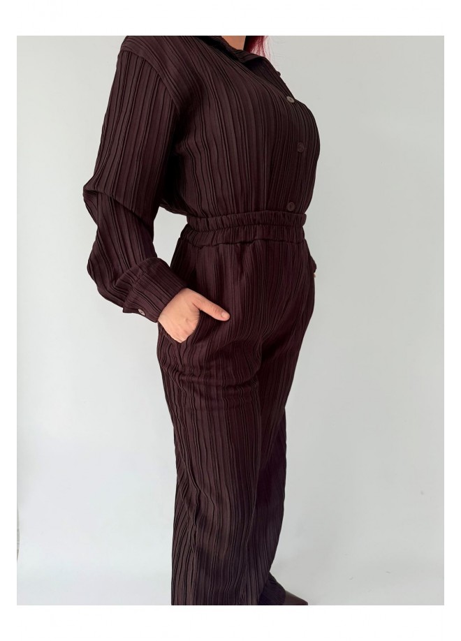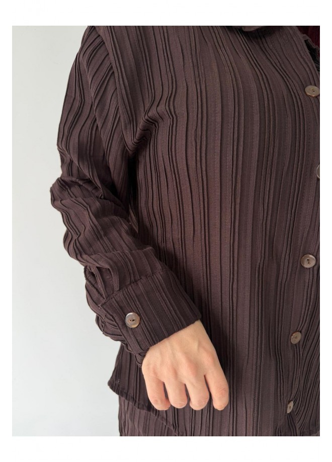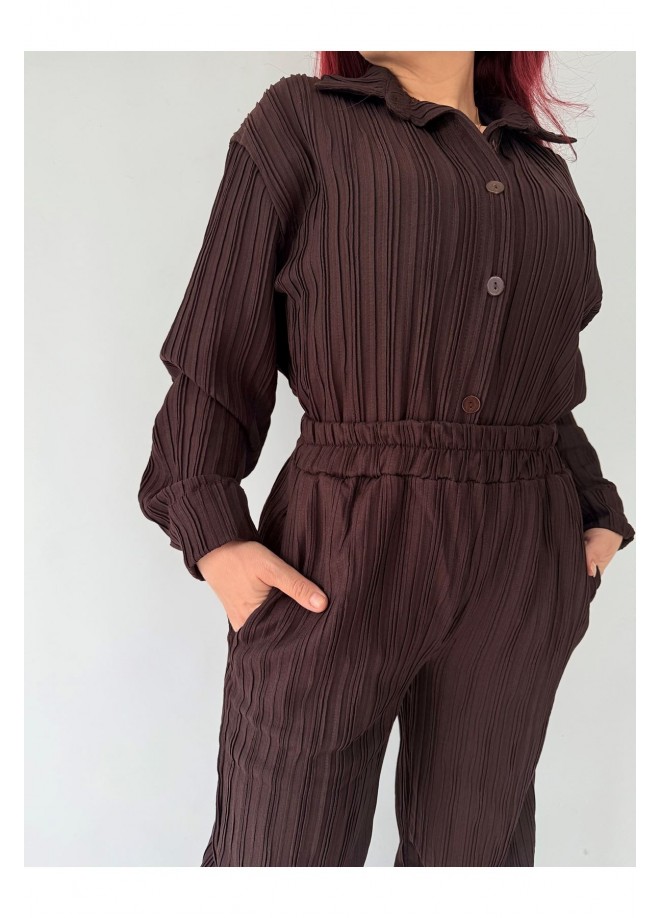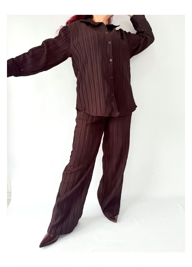 Pliseli Kahverengi Gömlekli İkili Takım