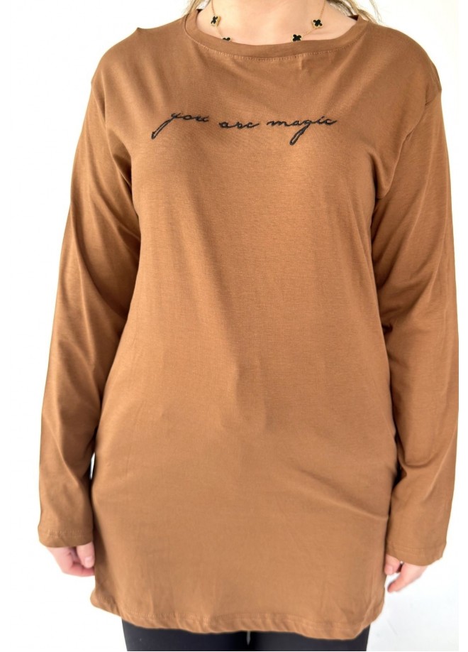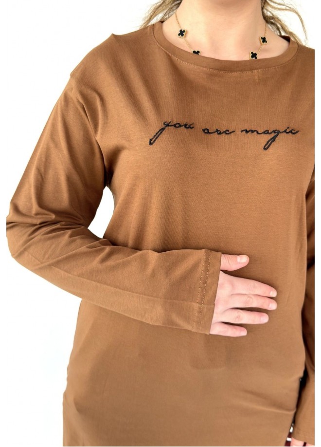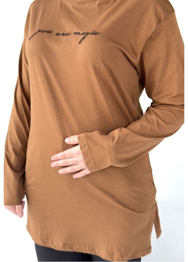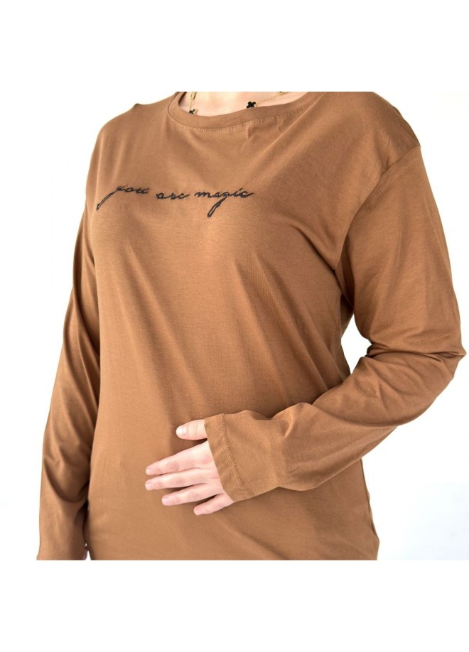 Hetta Kahverengi Uzun Kollu Tişört