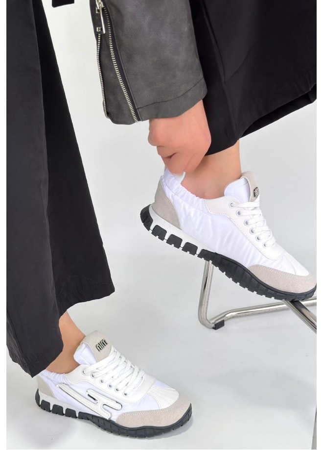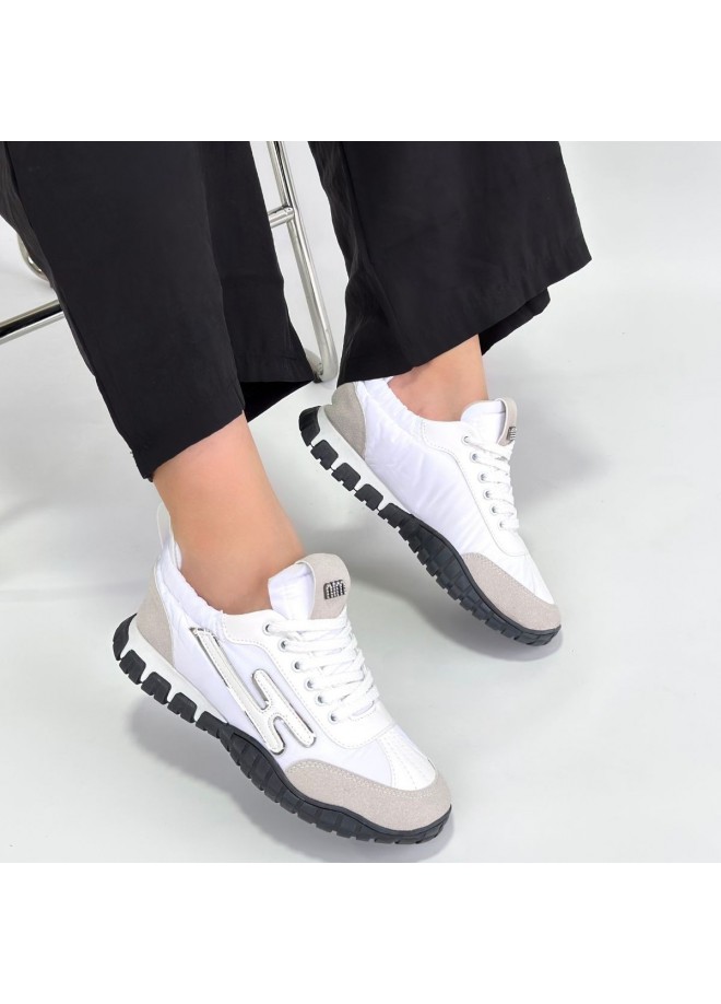 Huer Beyaz Nubuk Bağcıklı Spor Ayakkabı