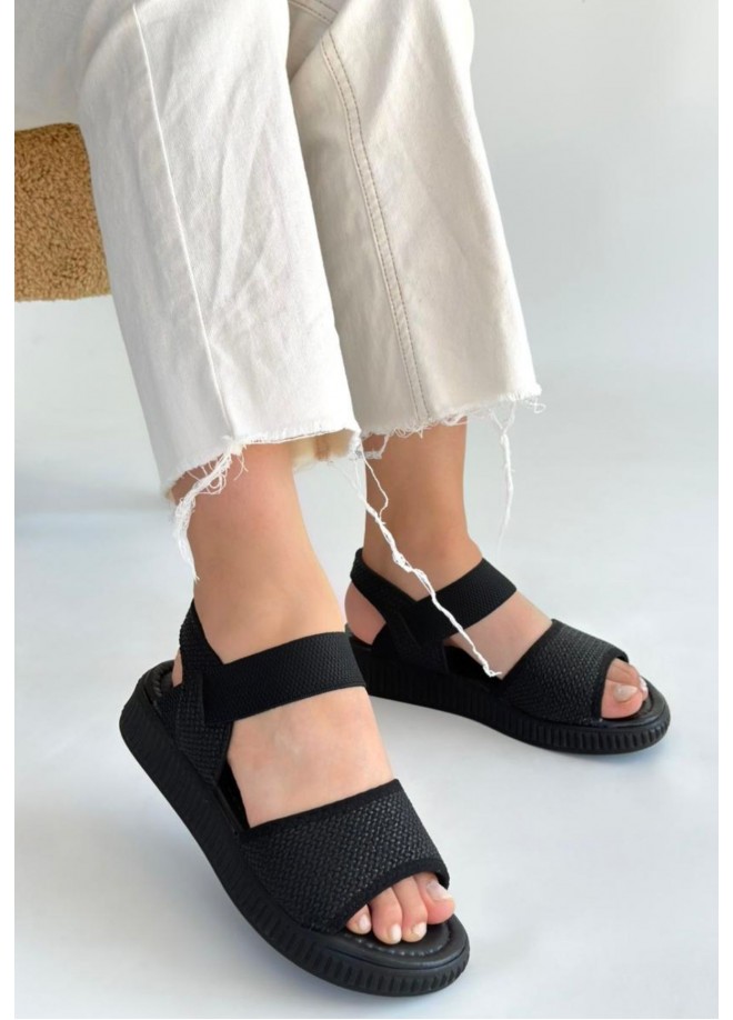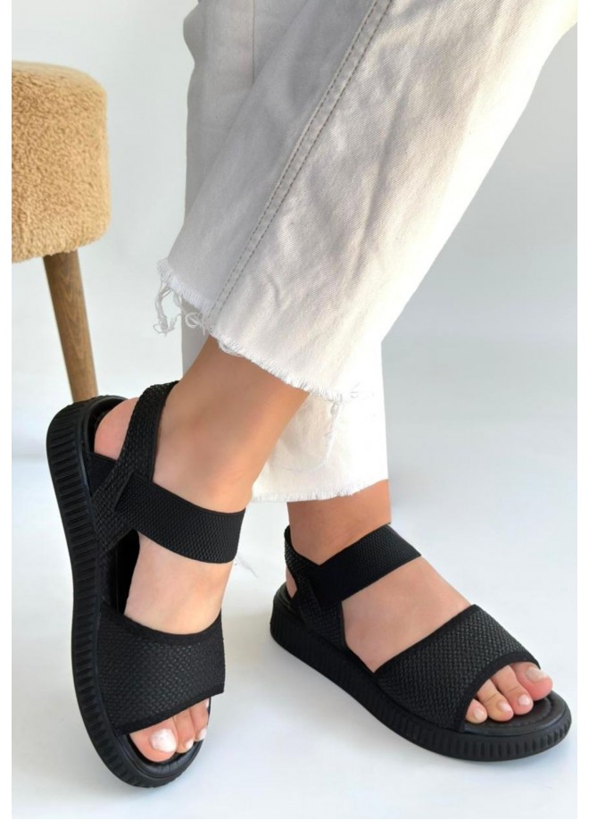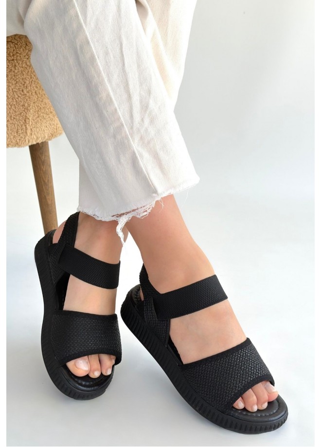 Jake Siyah Hasır Cilt Sandalet