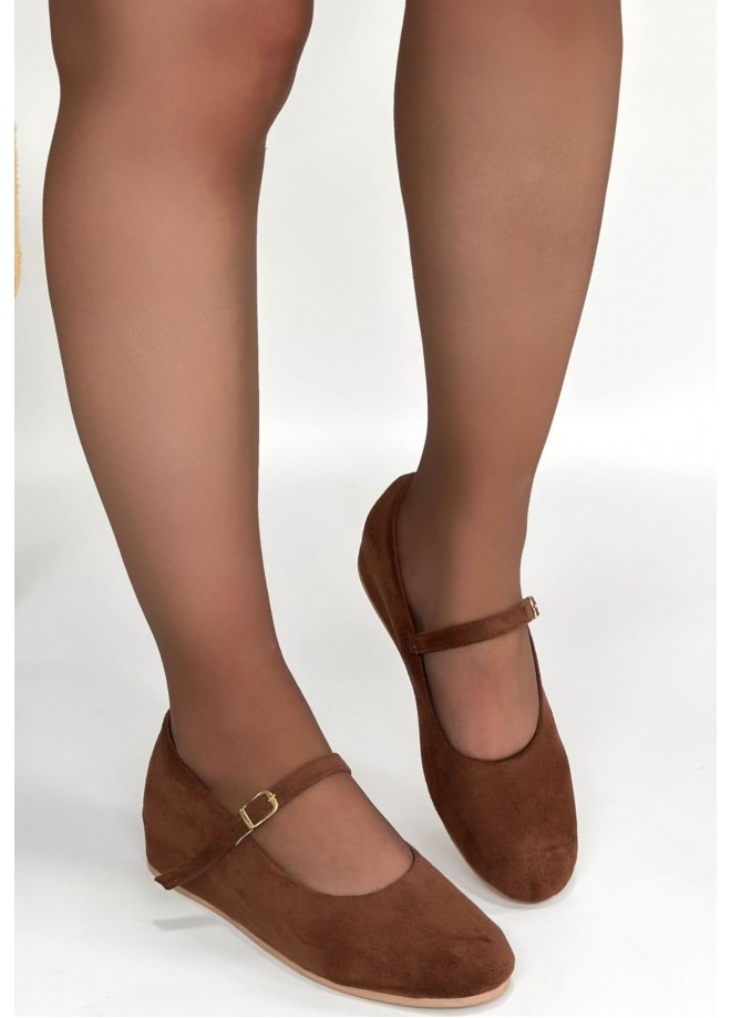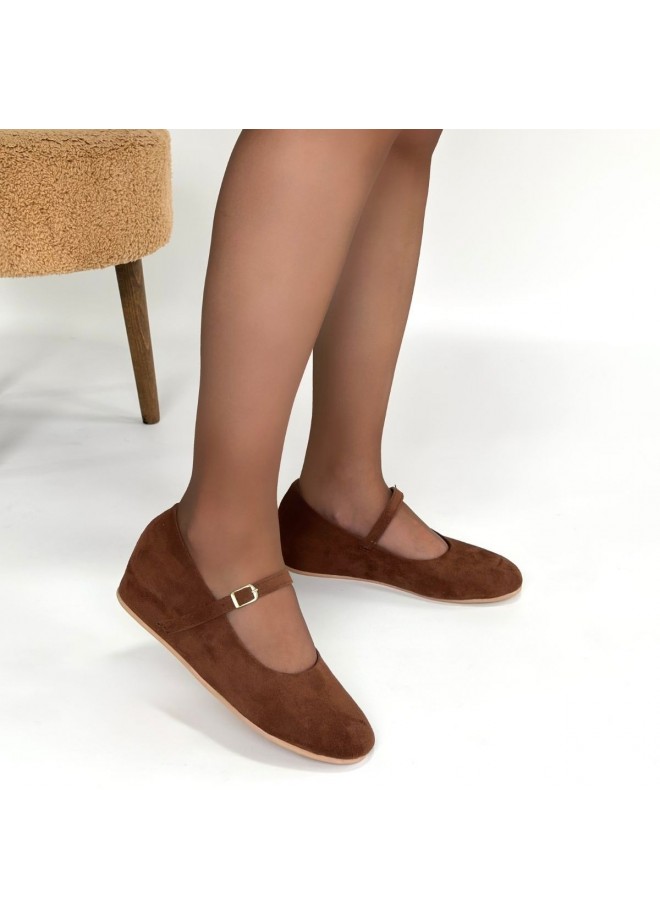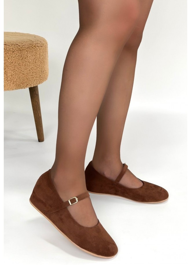 Lossa Taba Süet Kemerli Babet Ayakkabı