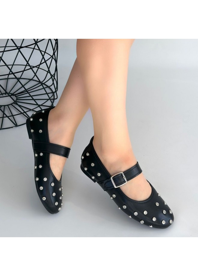 Ritta Siyah Cilt Kemerli Babet Ayakkabı