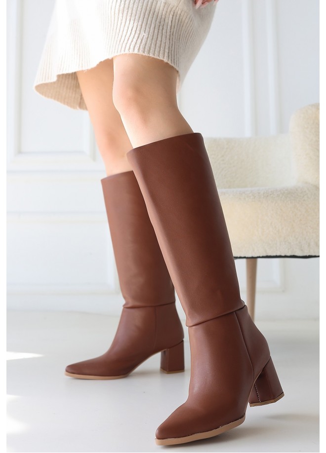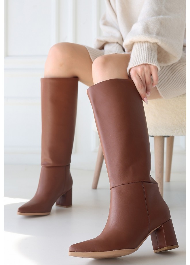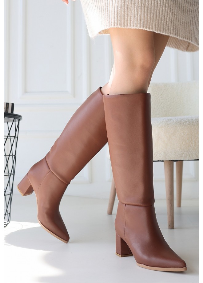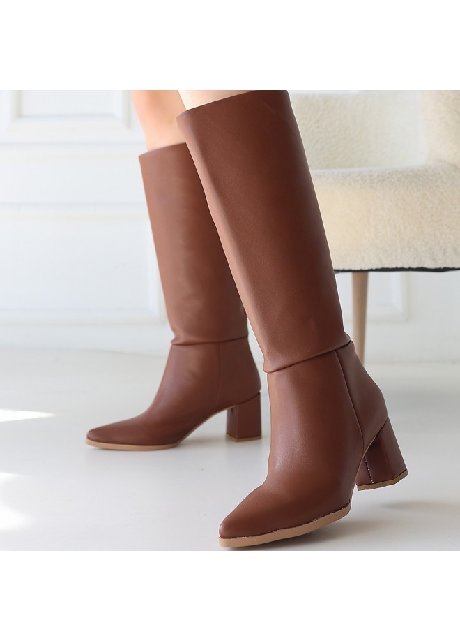 Roksa Taba Cilt Topuklu Çizme
