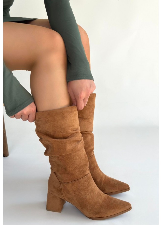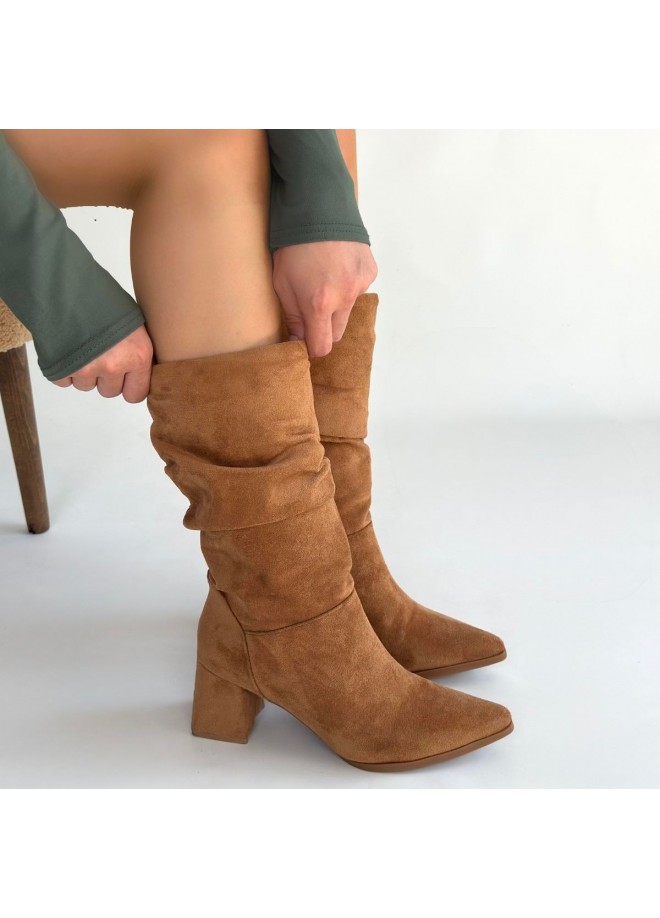 Detay: Topuklu Diz Altı Körüklü Çizme