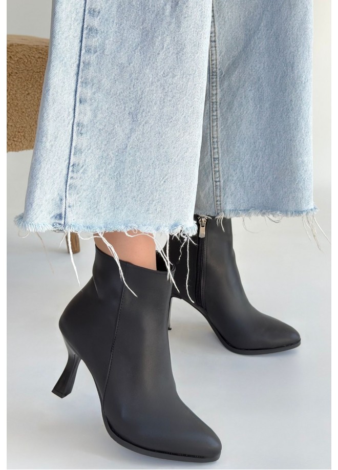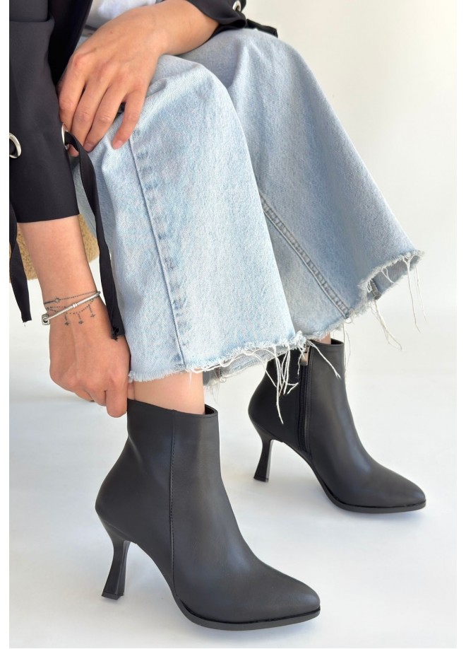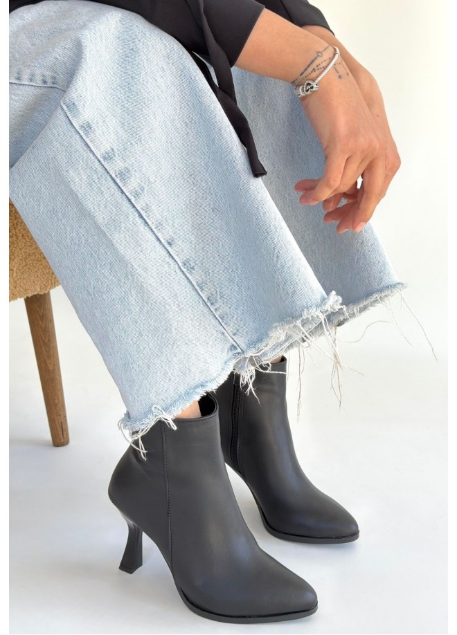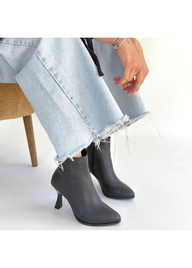 Mişha Siyah Cilt Topuklu Bot