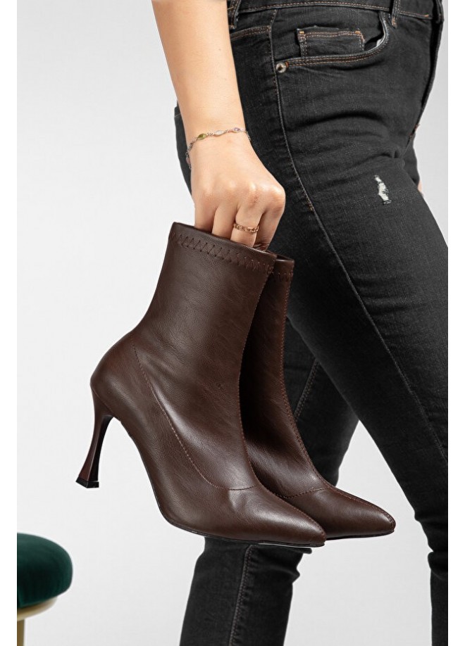 Orjen Kahverengi Cilt Streç Topuklu Bot