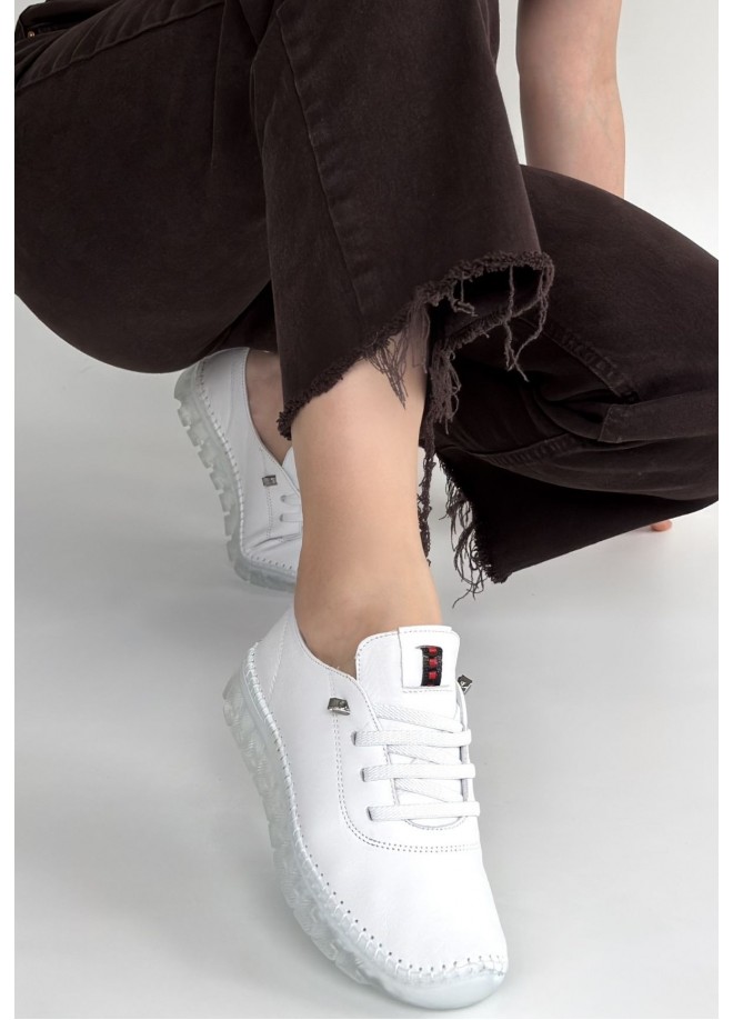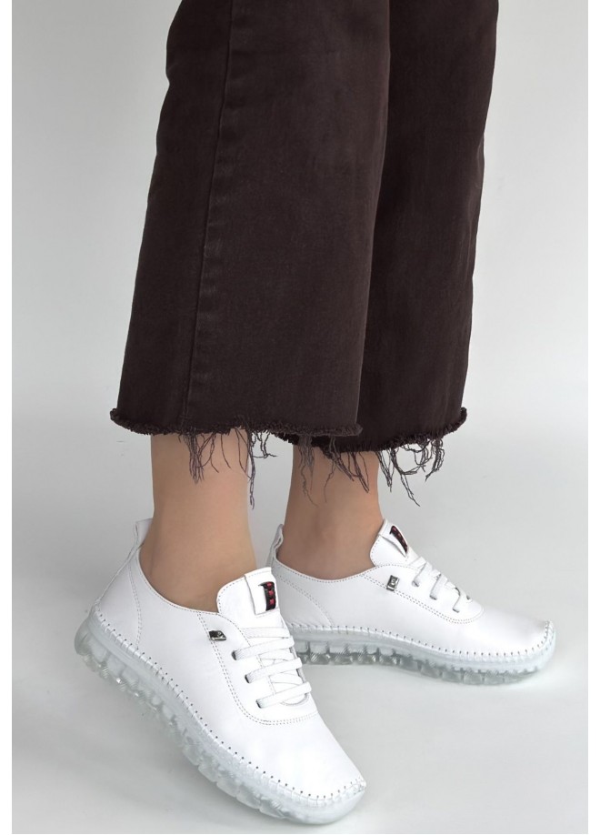 Kitta Beyaz Deri Bağcıklı Spor Ayakkabı