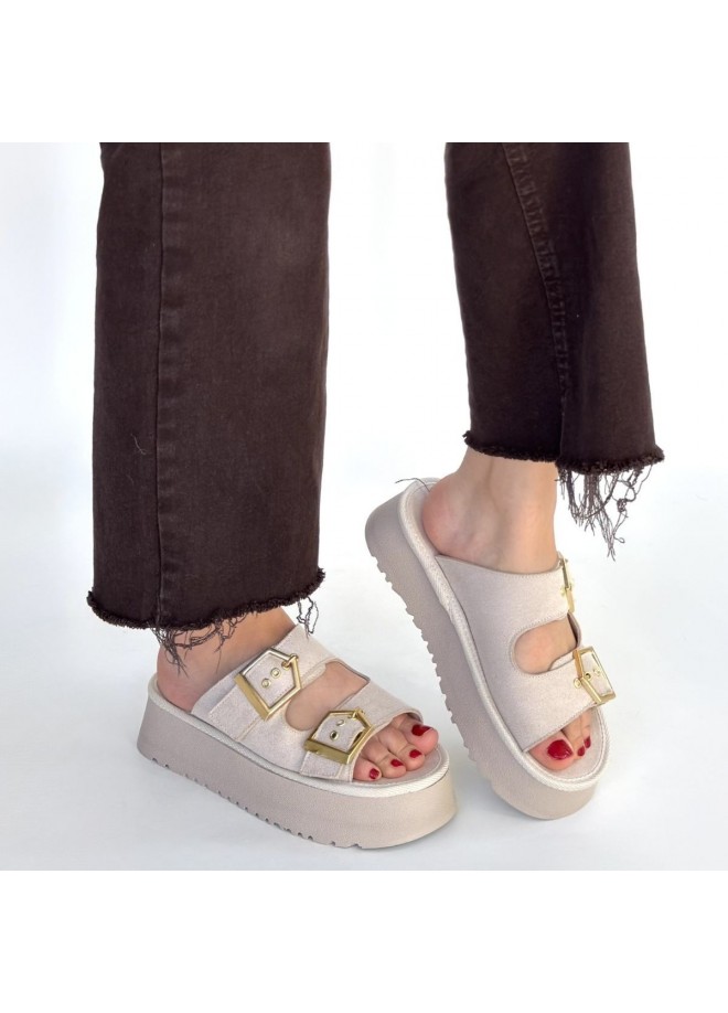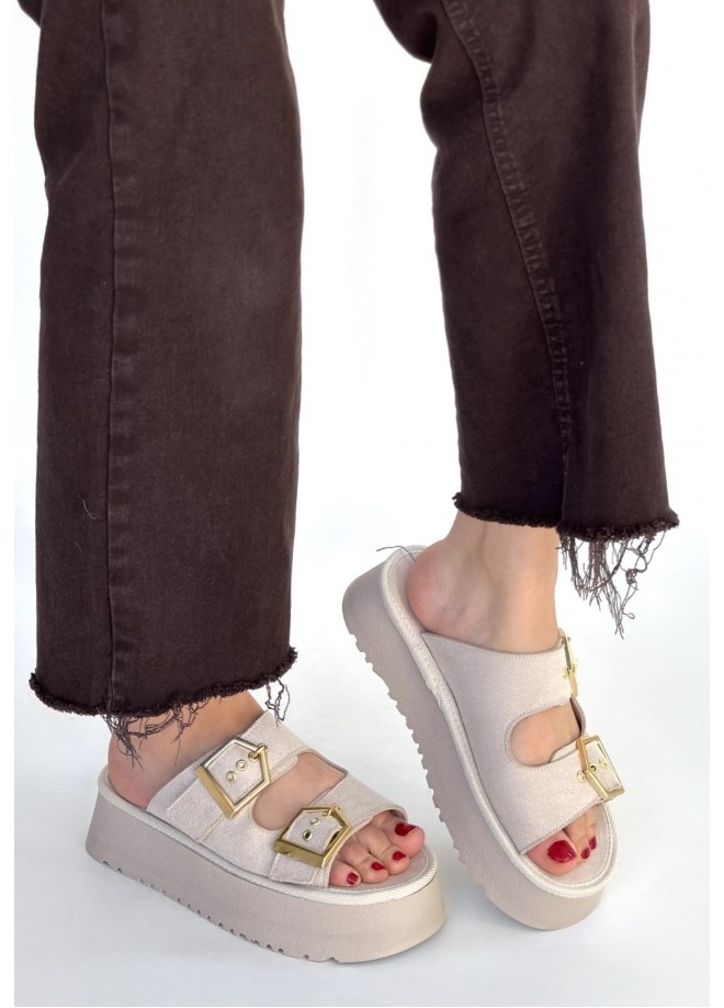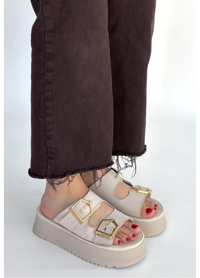 Detay: Çift Tokalı Terlik İçi Dışı Süet