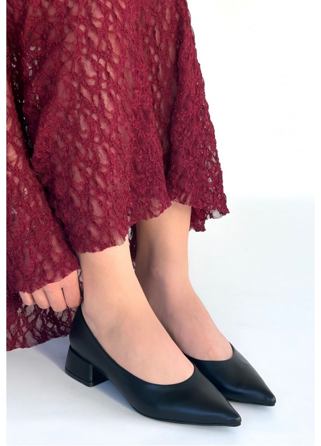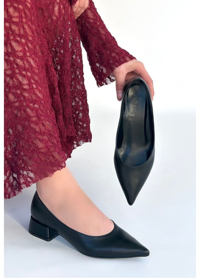 Ferla Siyah Cilt Topuklu Ayakkabı