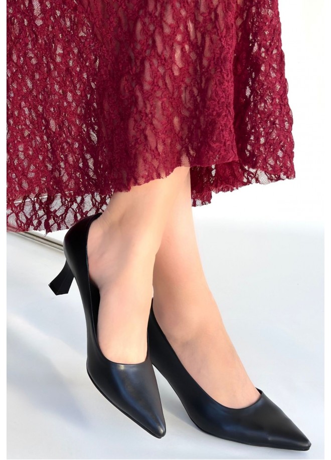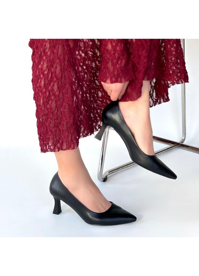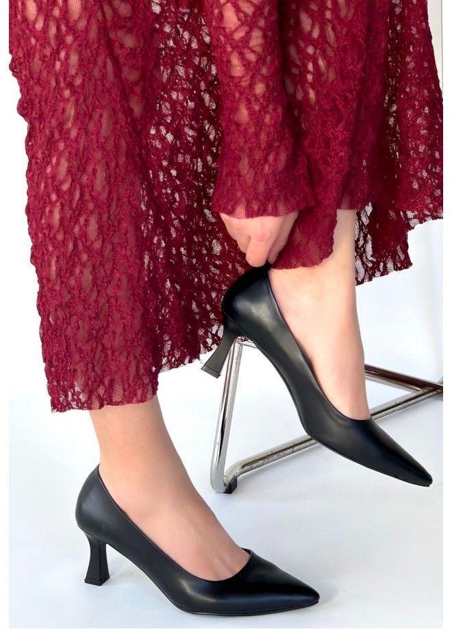 Mırta Siyah Cilt Topuklu Ayakkabı