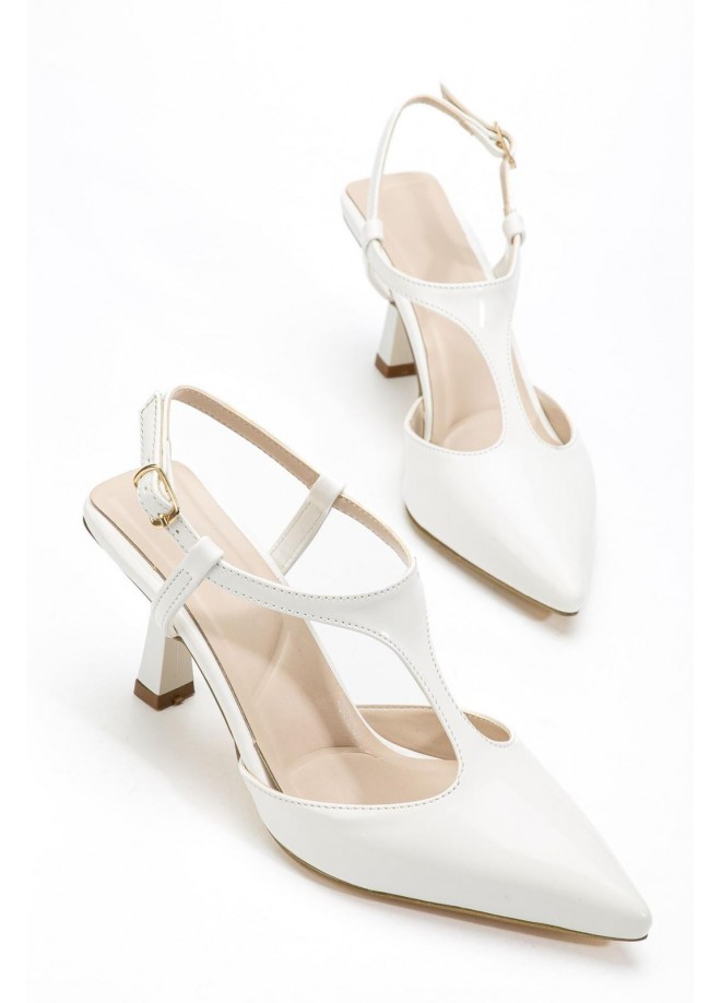Tula Beyaz Rugan Topuklu Ayakkabı