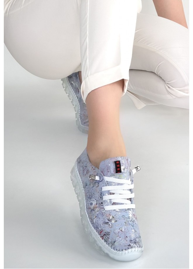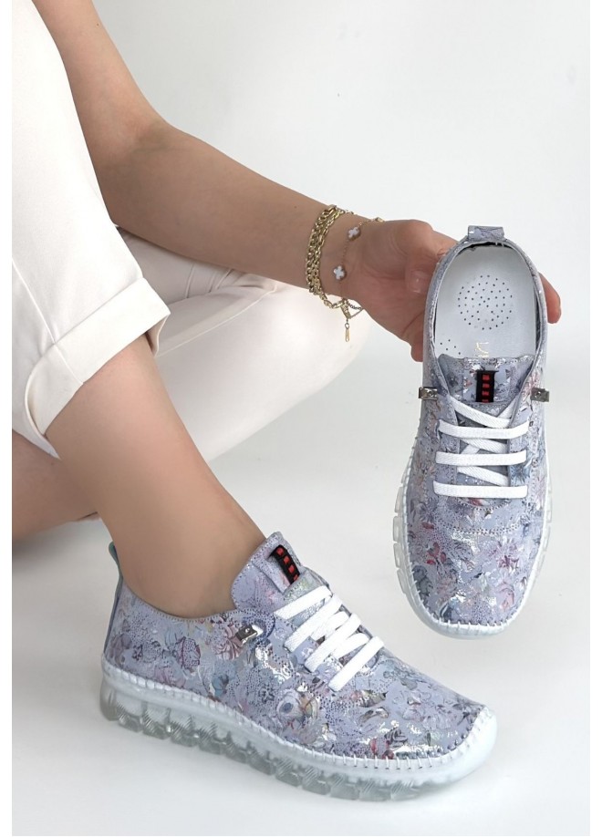 Jiten Lila Desenli Deri Bağcıklı Spor Ayakkabı