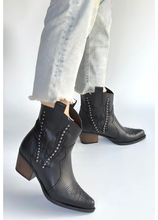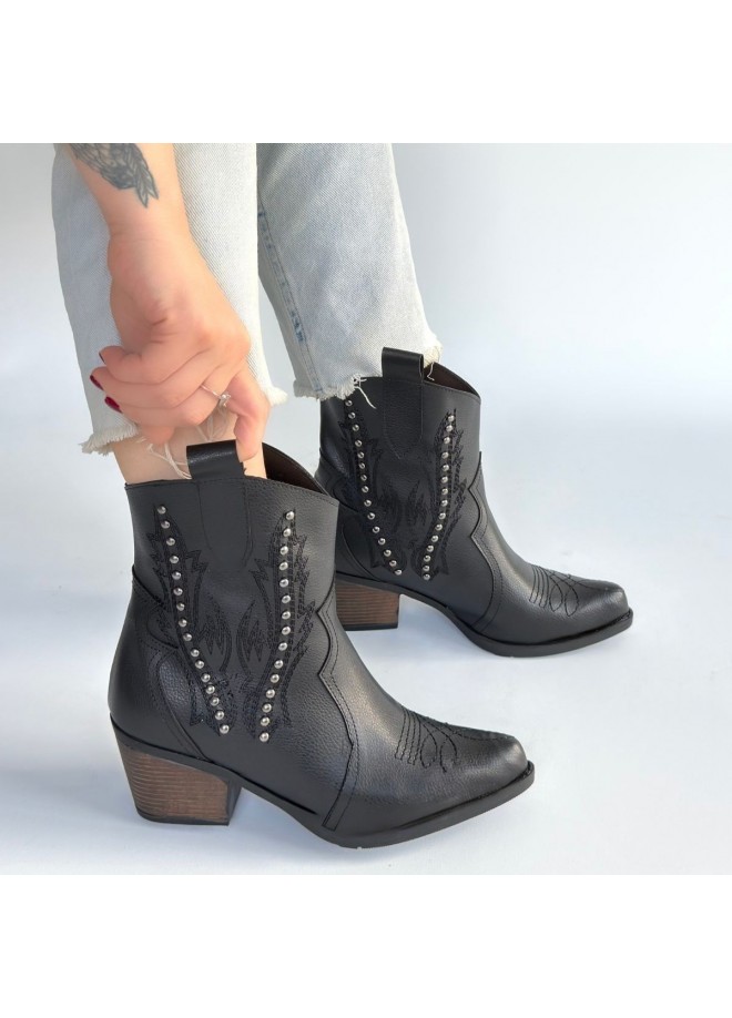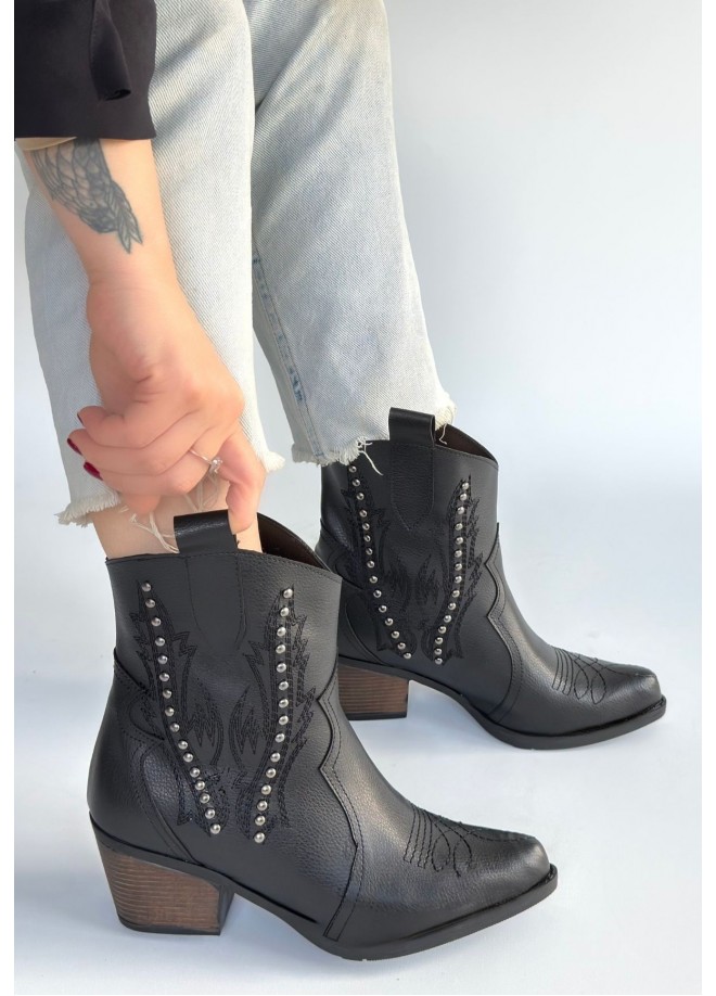 Matin Siyah Cilt Topuklu Bot