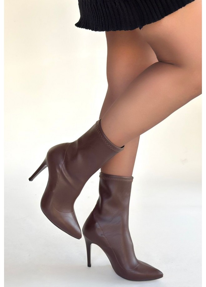 Verena Acı Kahve Cilt Topuklu Streç Bot