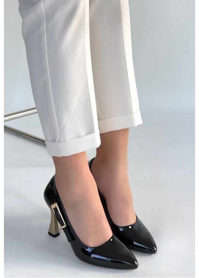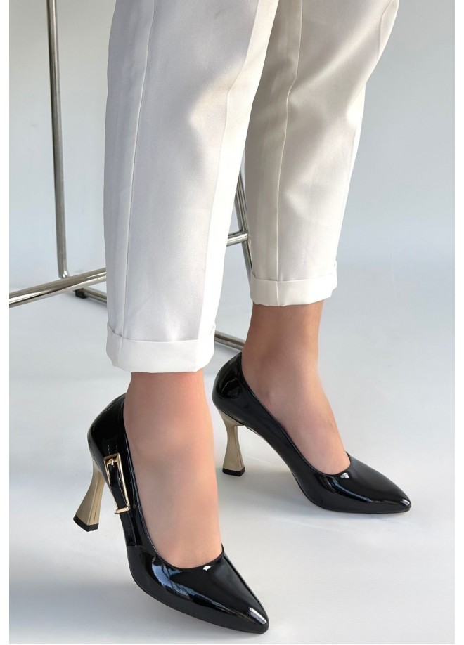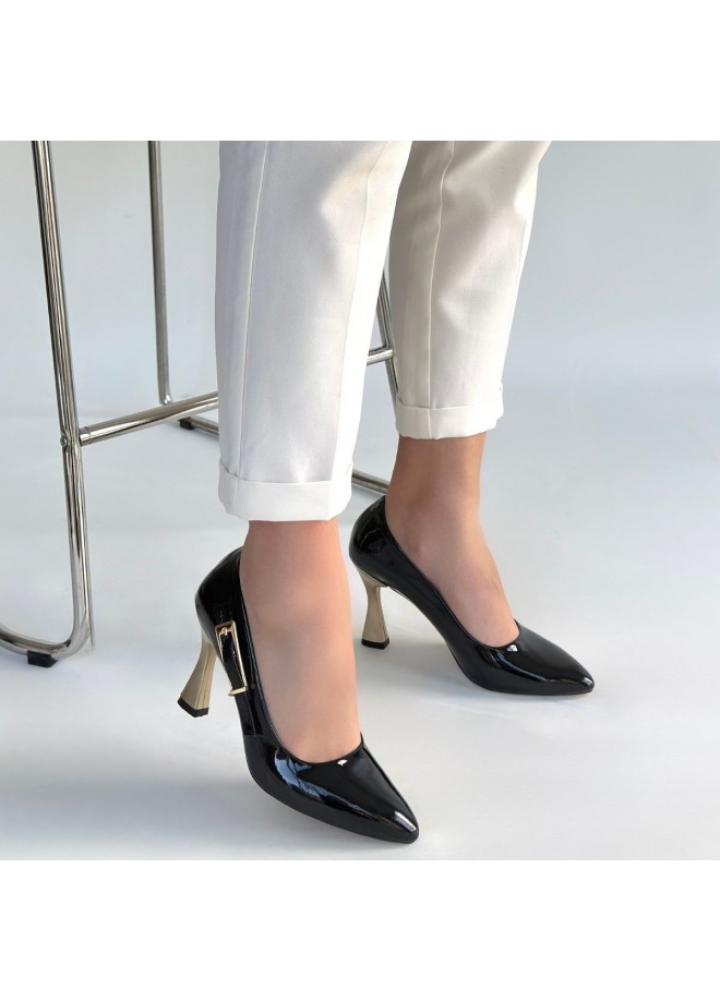 Motya Siyah Rugan Topuklu Ayakkabı