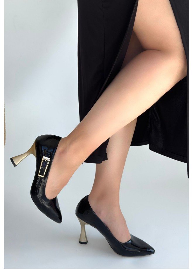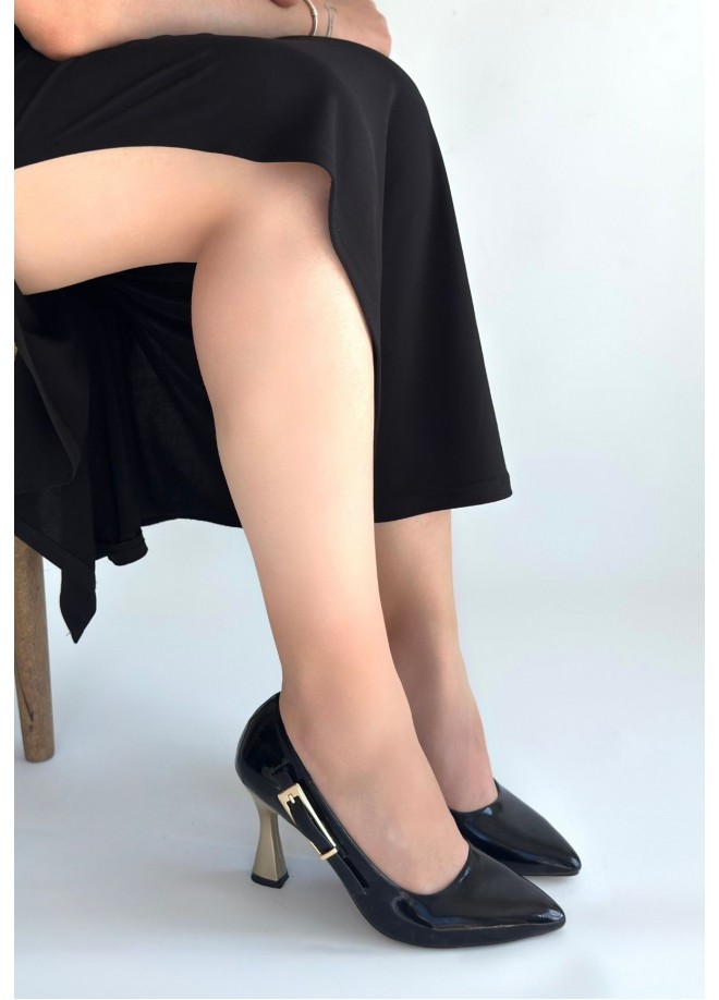 Motya Siyah Rugan Topuklu Ayakkabı