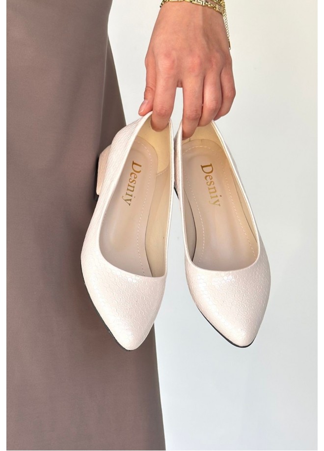 Nitya Bej Baskılı Rugan Topuklu Ayakkabı
