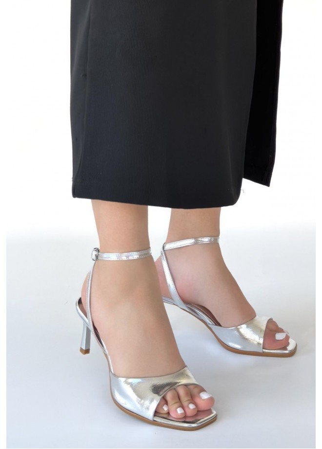 Lenya Gümüş Rugan Topuklu Ayakkabı