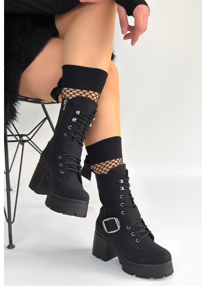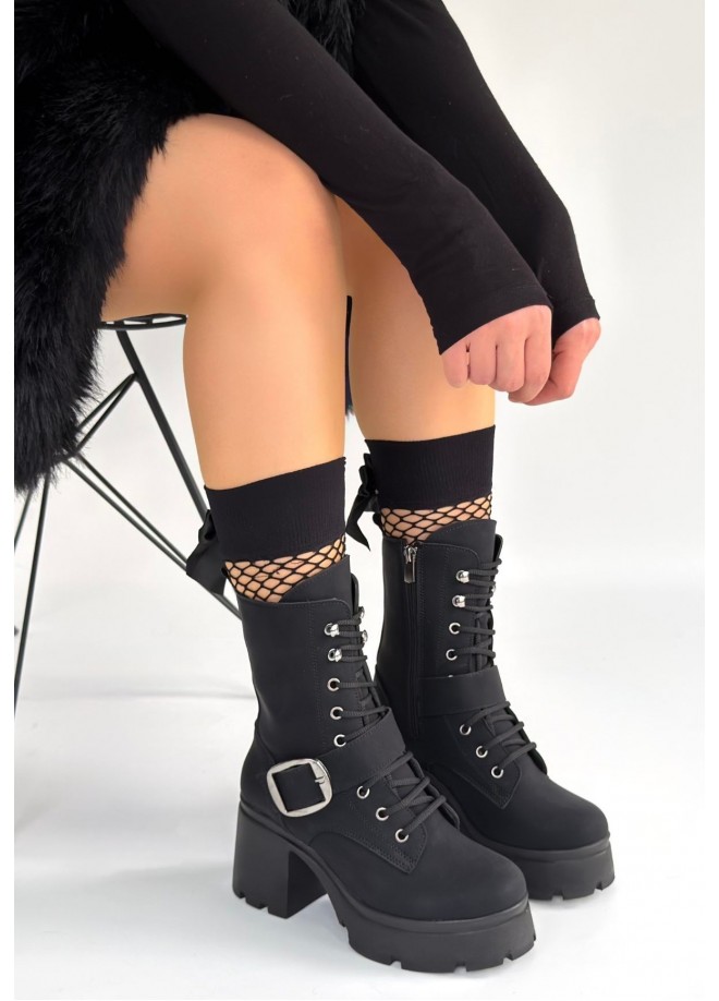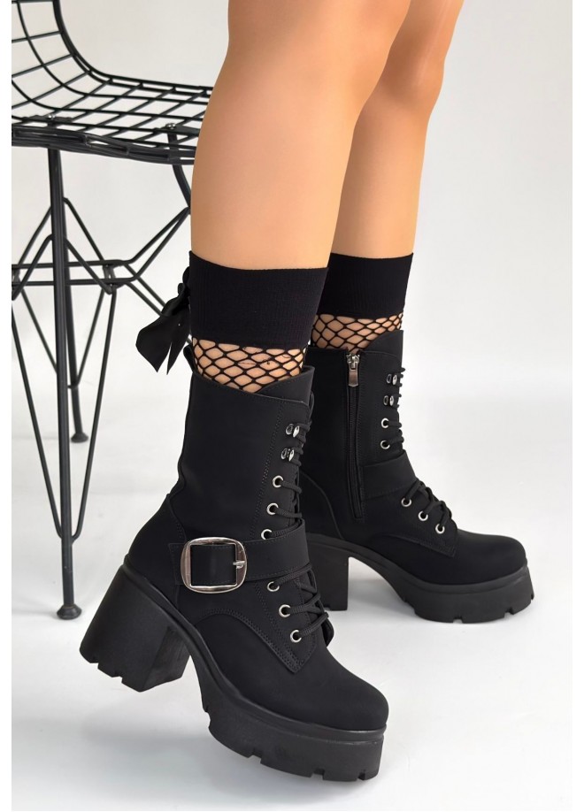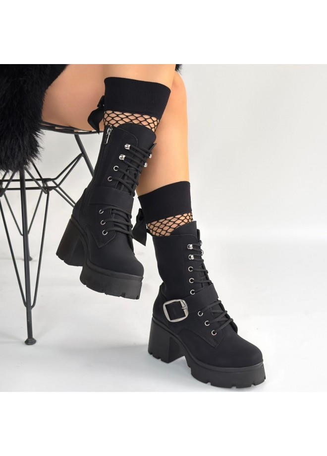 Etiketler: Linma, Siyah, Nubuk, Bağcıklı, Topuklu, Bot