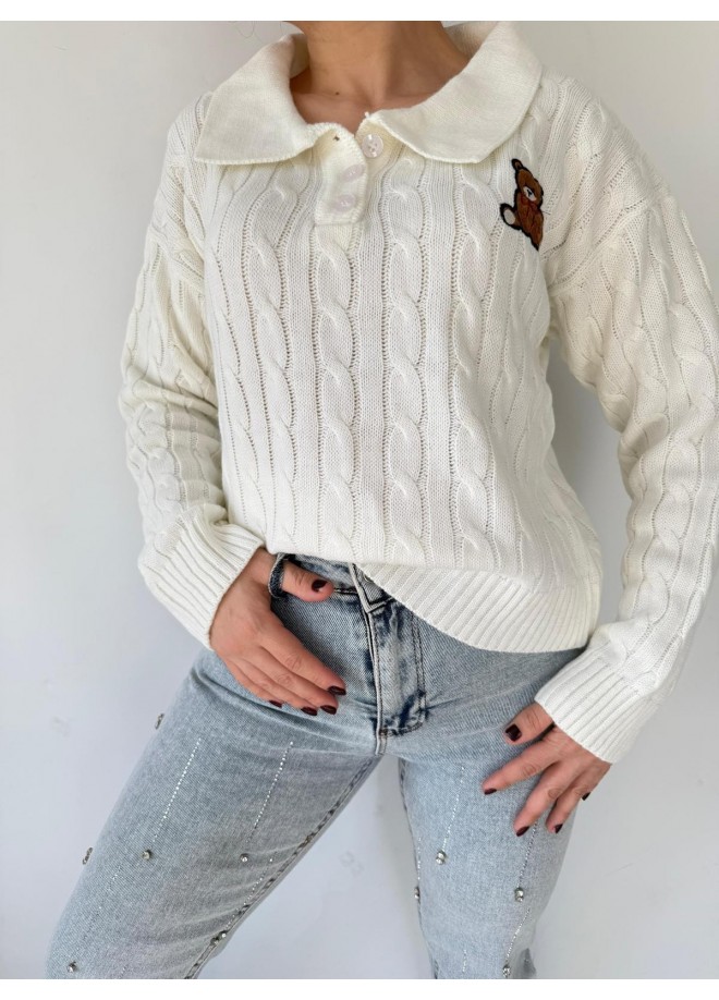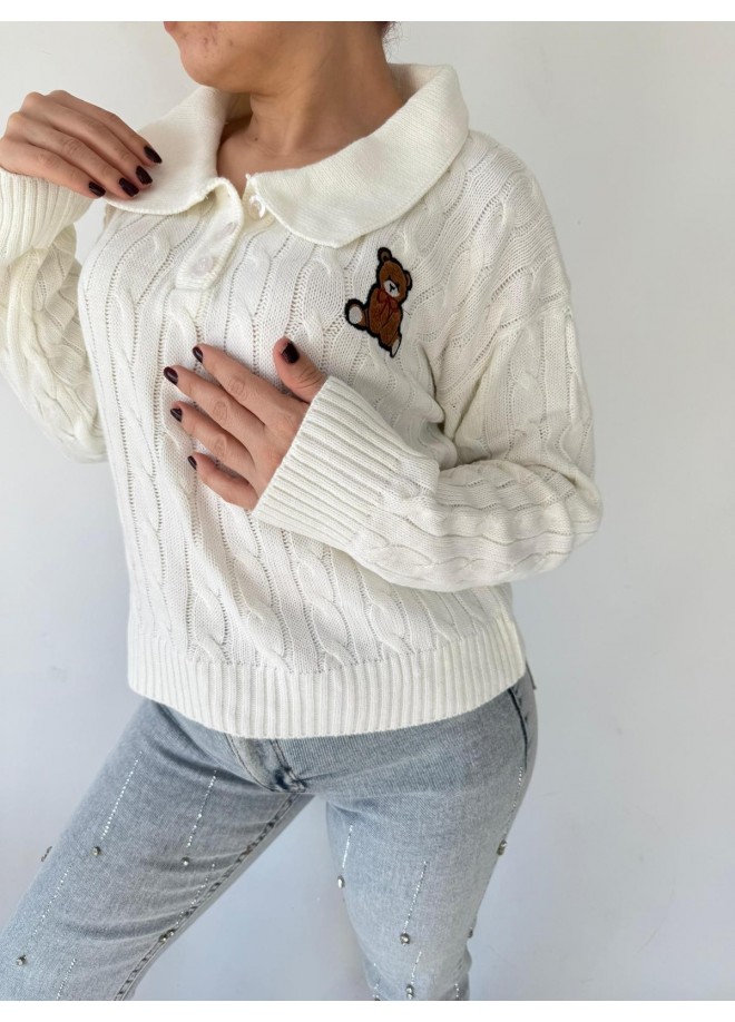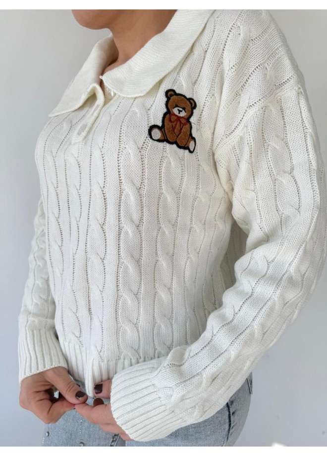Lovvel Beyaz Ayıcıklı Triko Kazak