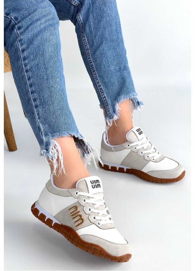 Marje Beyaz Cilt Bağcıklı Spor Ayakkabı