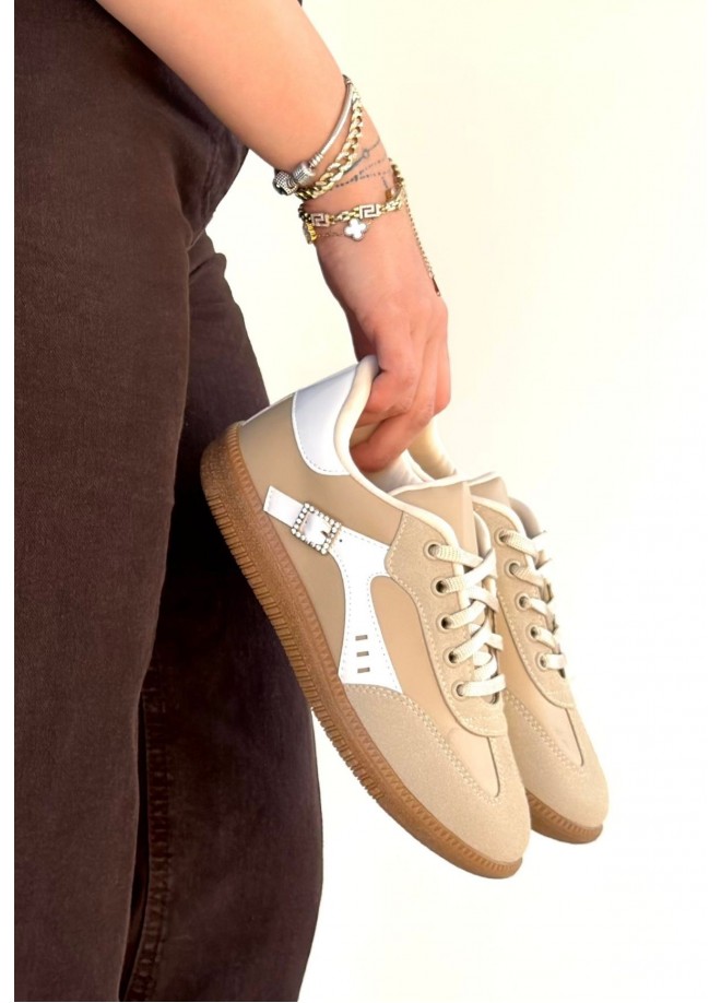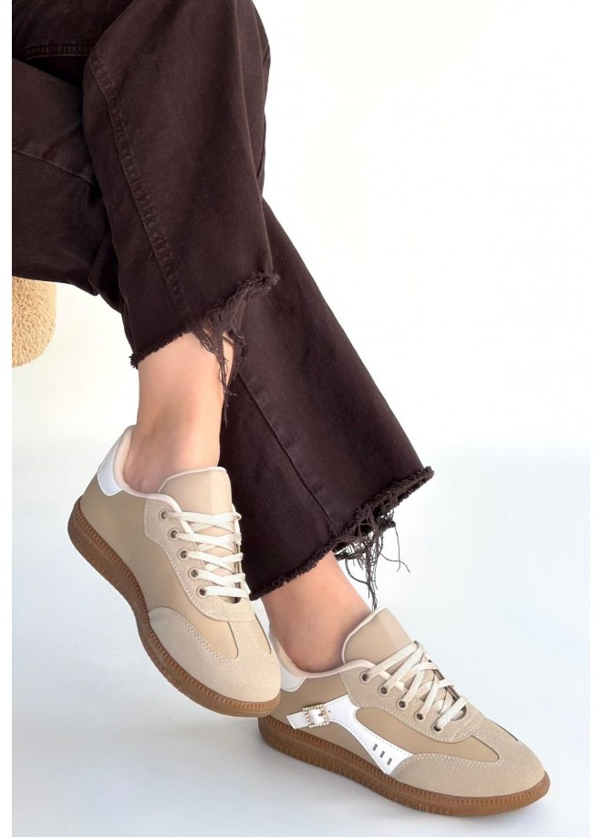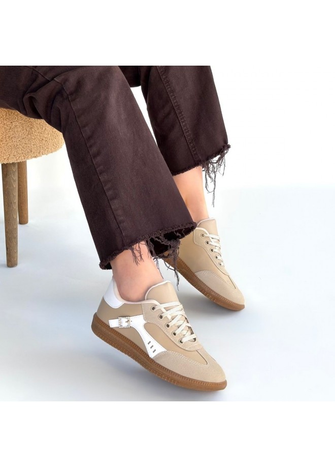 Mier Bej Cilt Bağcıklı Spor Ayakkabı
