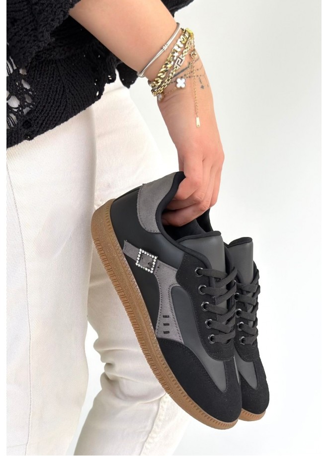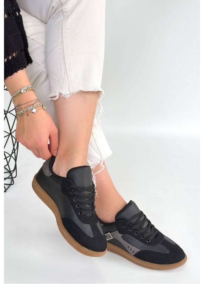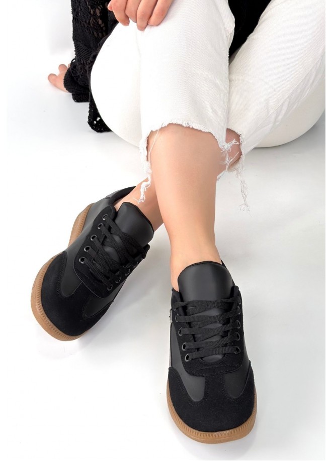 Mier Siyah Cilt Bağcıklı Spor Ayakkabı