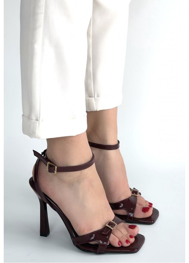 Mirge Bordo Rugan Topuklu Bilekten Kemerli Ayakkabı