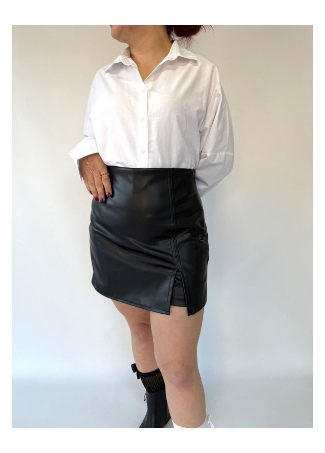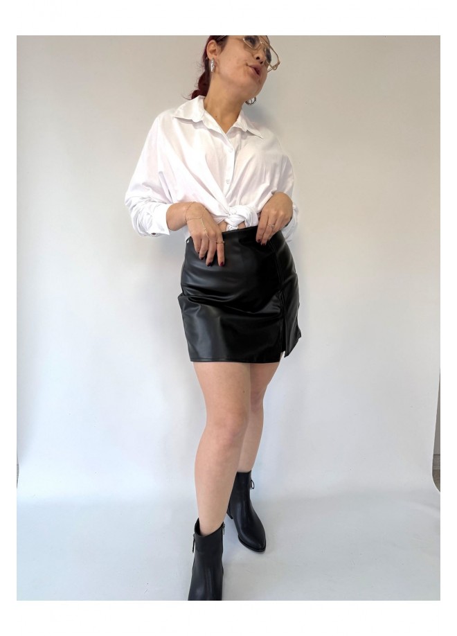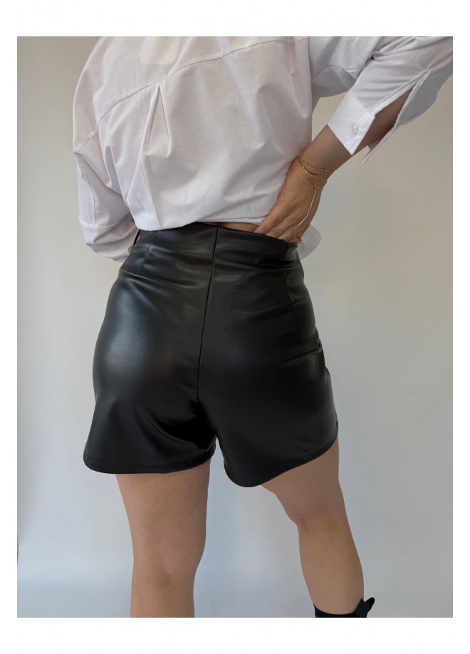 Miyya Siyah Deri Şort Etek