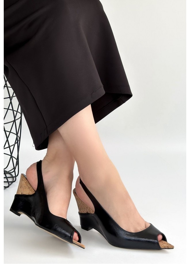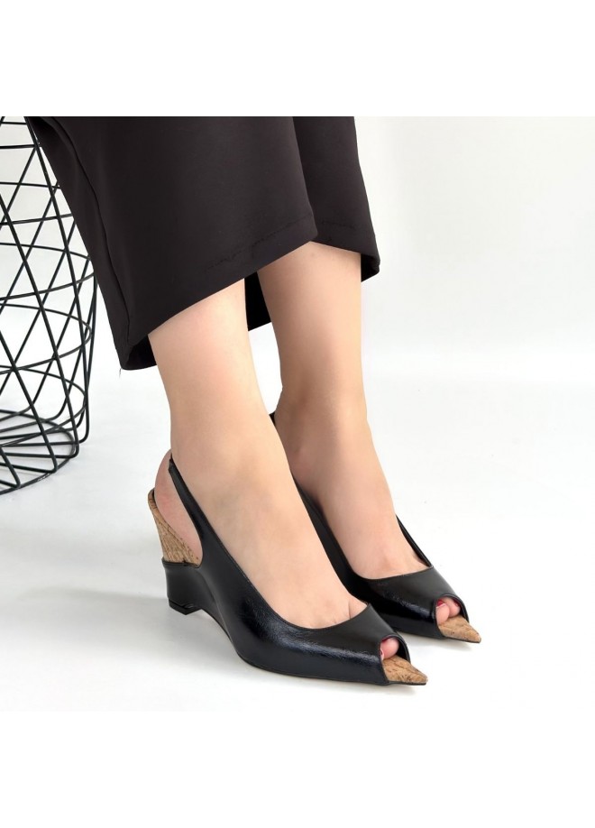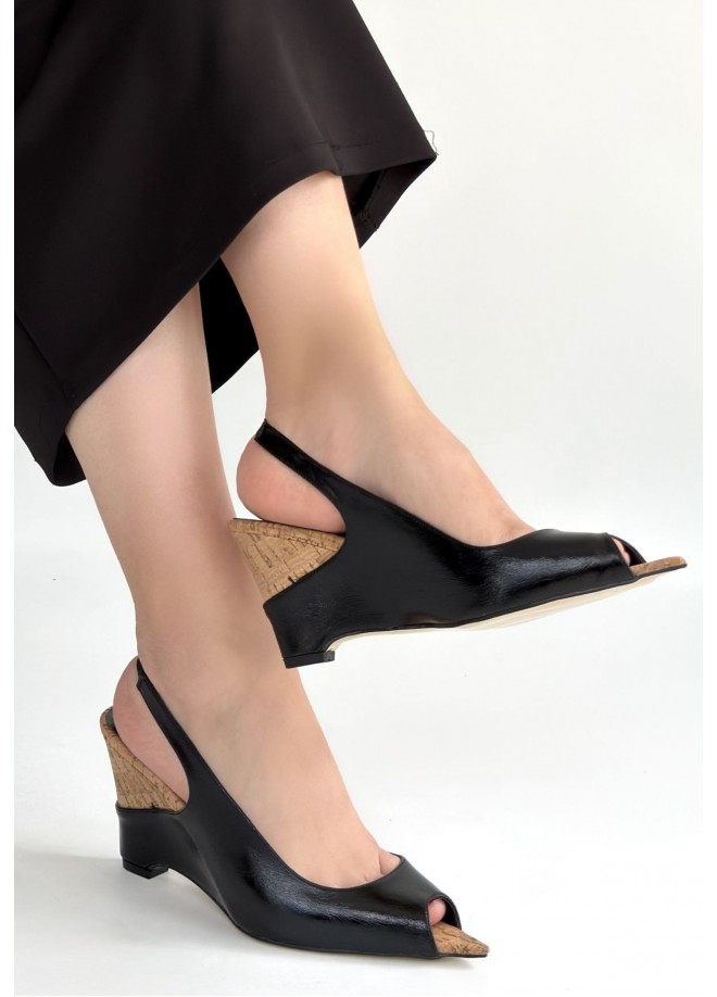 Nemba Siyah Rugan Dolgu Topuk Ayakkabı
