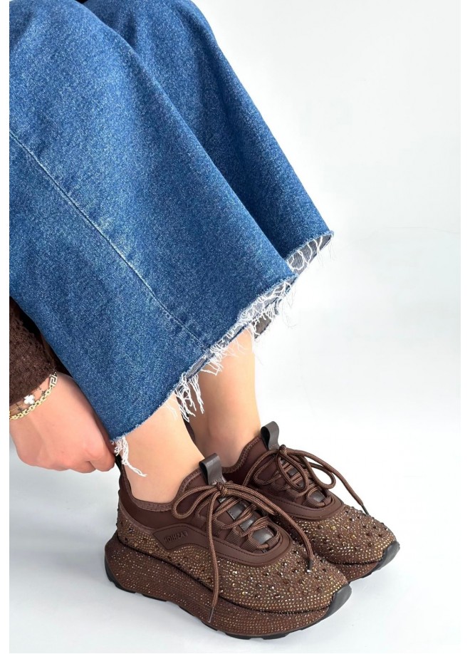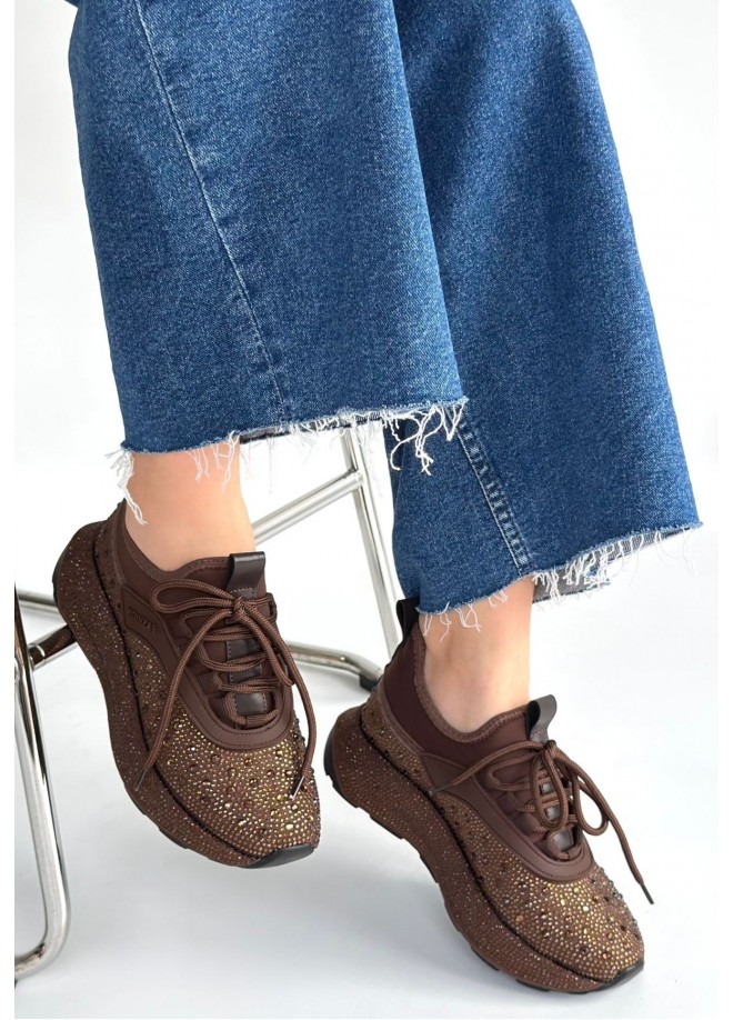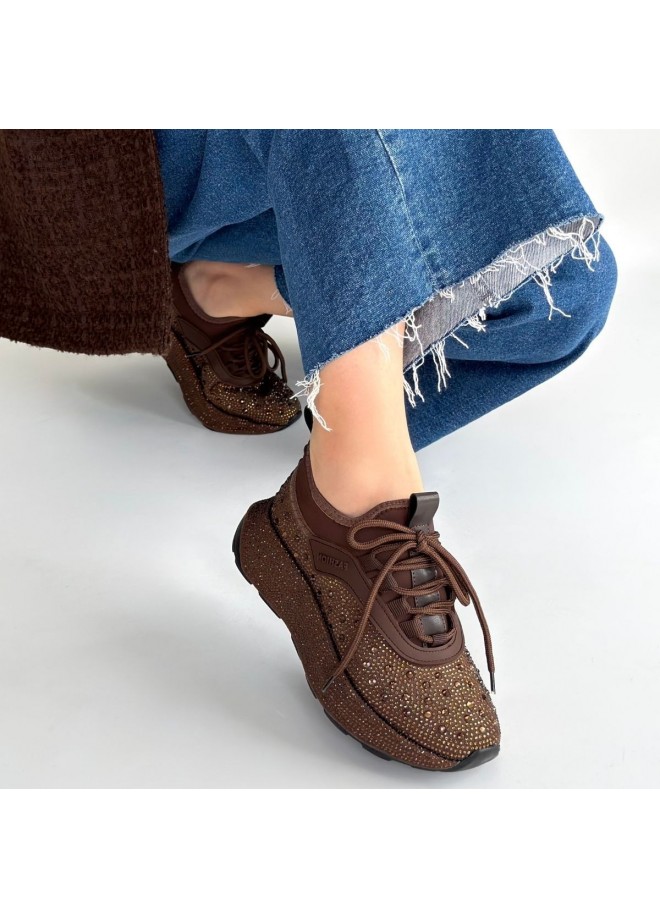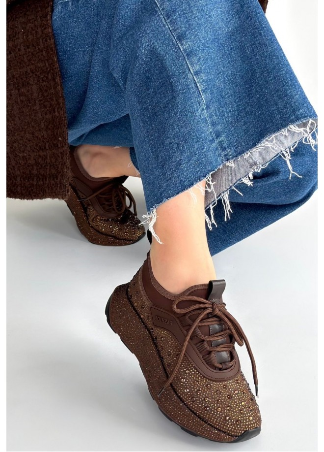 Rimay Kahverengi Cilt Boncuk İşlemeli Spor Ayakkabı