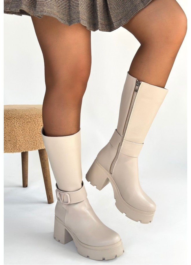 Detay: Topuklu Yandan Fermuarlı Çizme