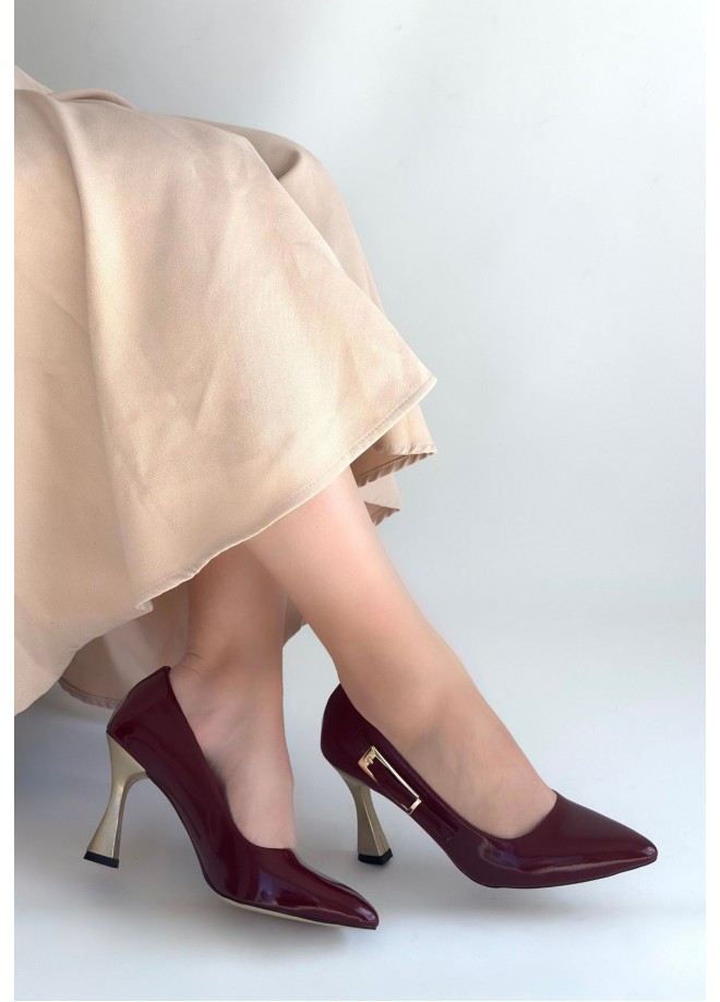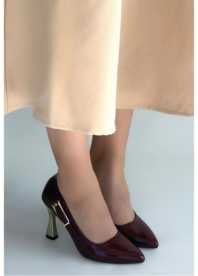 Motya Bordo Rugan Topuklu Ayakkabı