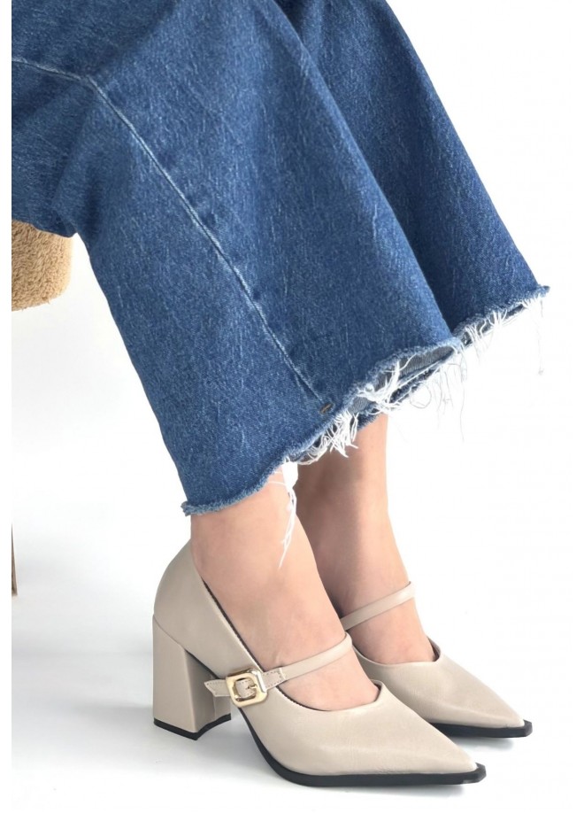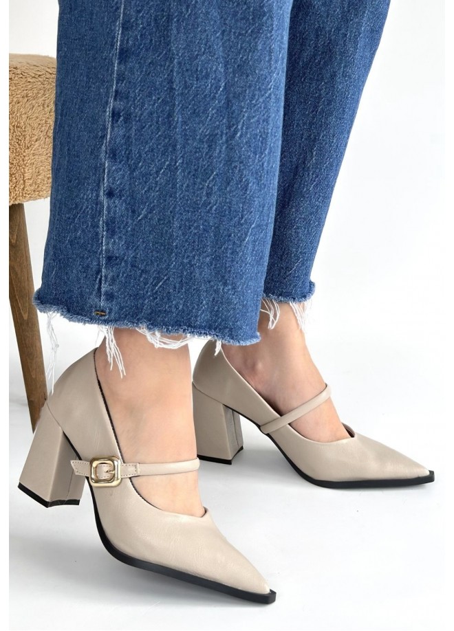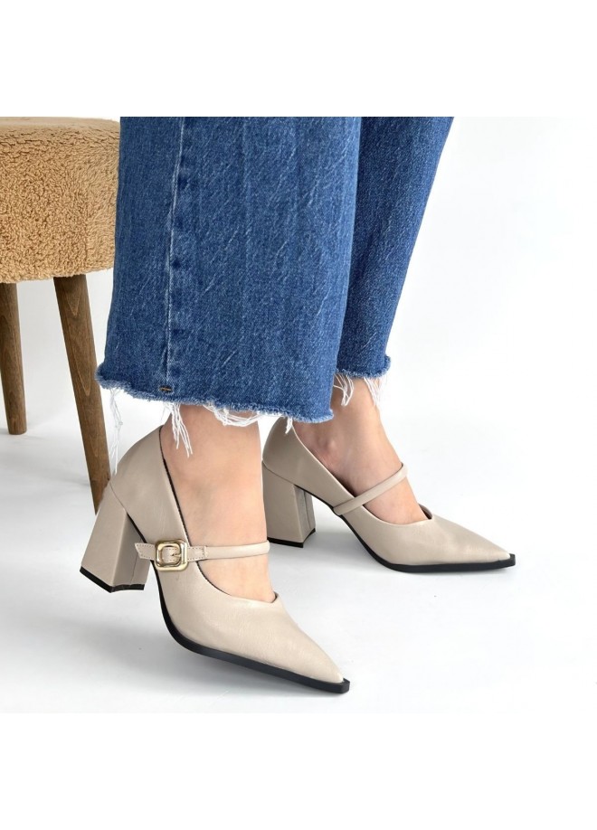 Nıvra Bej Cilt Topuklu Ayakkabı