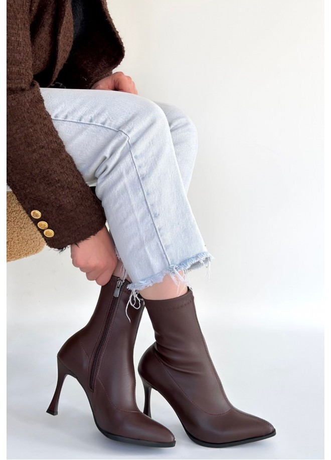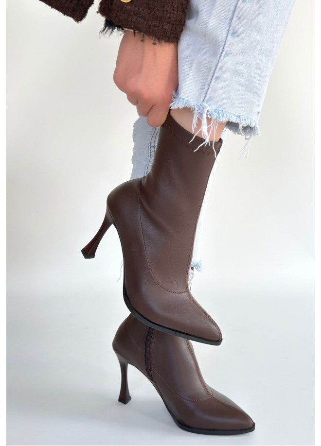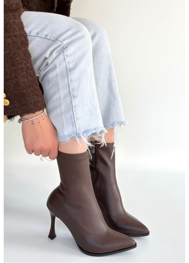 Orjen Kahverengi Cilt Streç Topuklu Bot