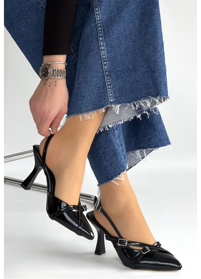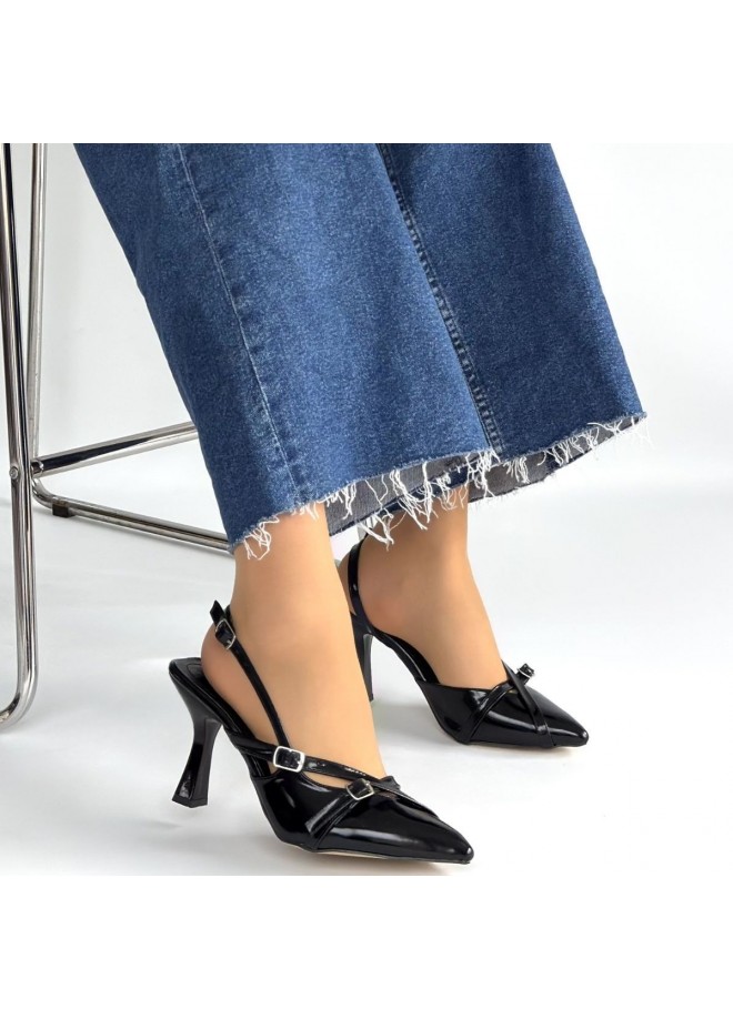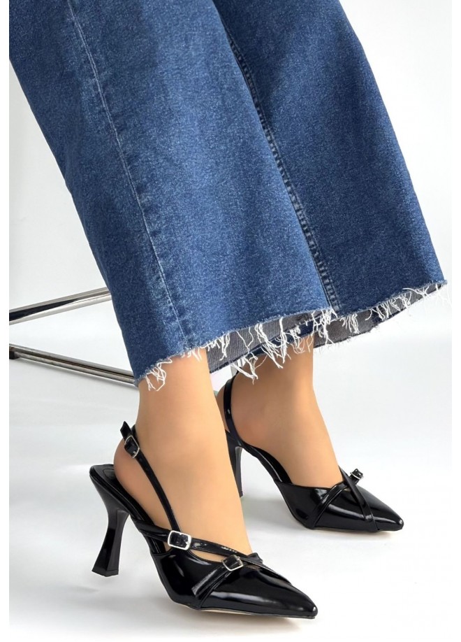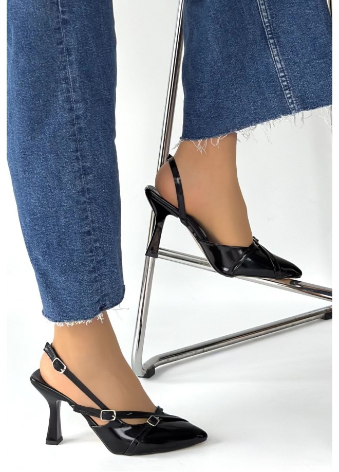 Tetti Siyah Rugan Topuklu Ayakkabı