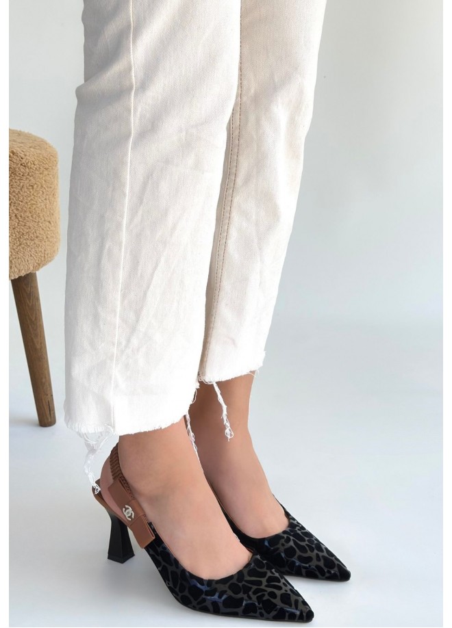 Toran Siyah Rugan Siyah Süet Detaylı Topuklu Ayakkabı