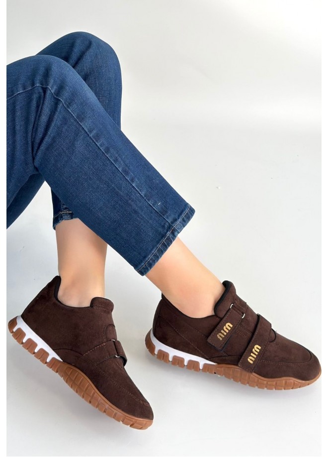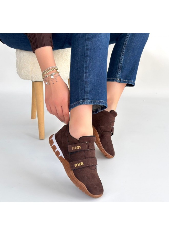 Tunga Kahverengi Süet Cırt Cırtlı Spor Ayakkabı