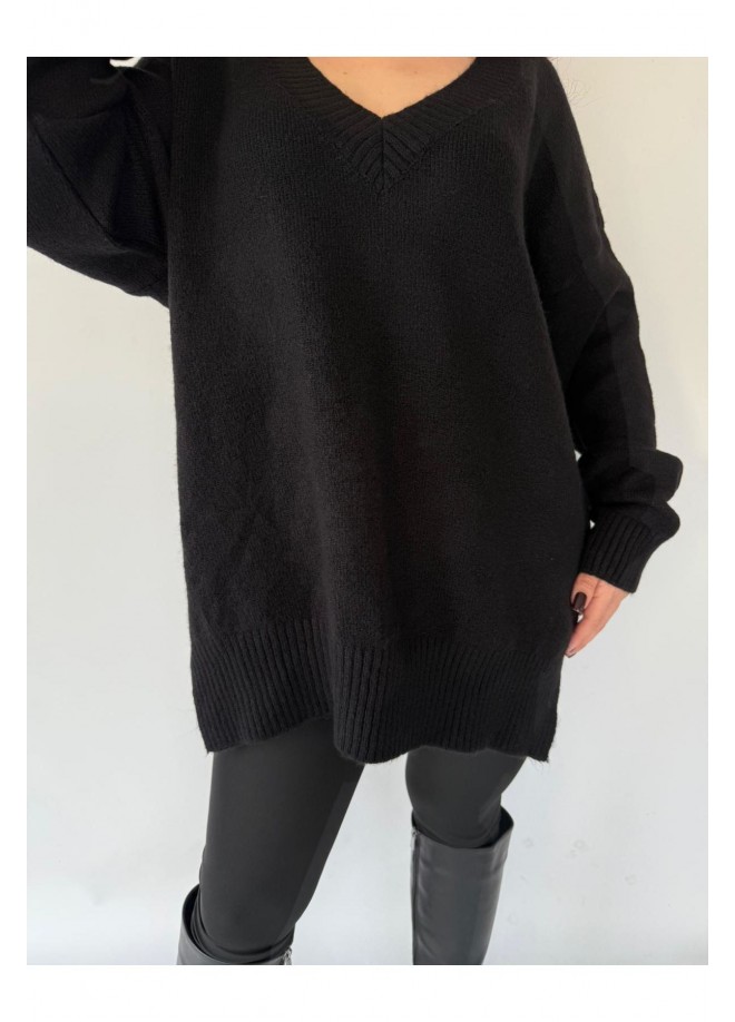 • Model: Uzun kollu, diz üstüne inen (tunik boy), siyah kazak.